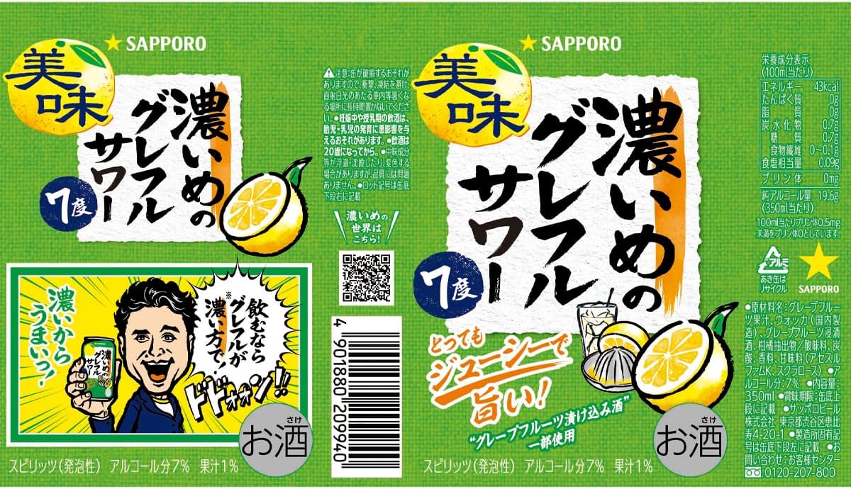 【味わい】:グレープフルーツ果汁に加え、グレープフルーツを漬け込んだお酒を一部使用。ギュッと手搾りした様なジューシーな果実感が味わえる、グレフル味‘濃いめ’のグレフルサワーです。