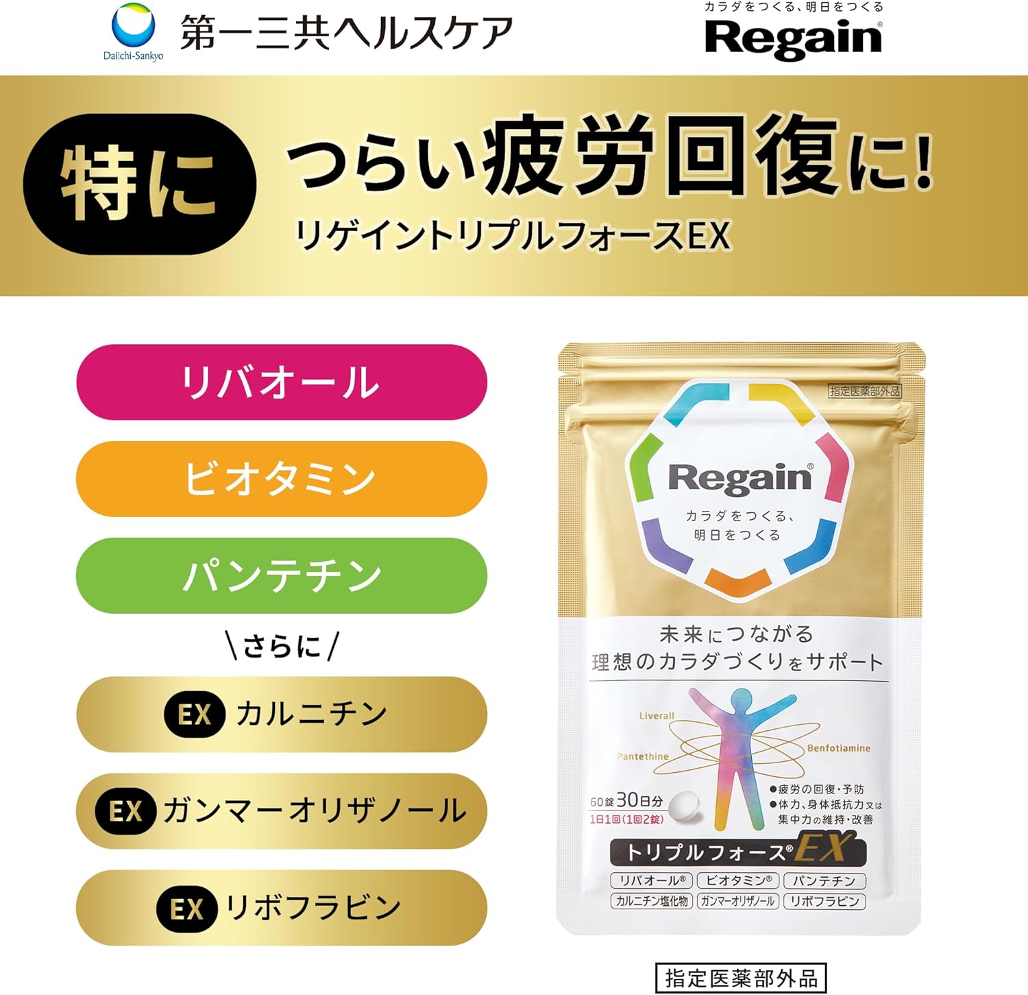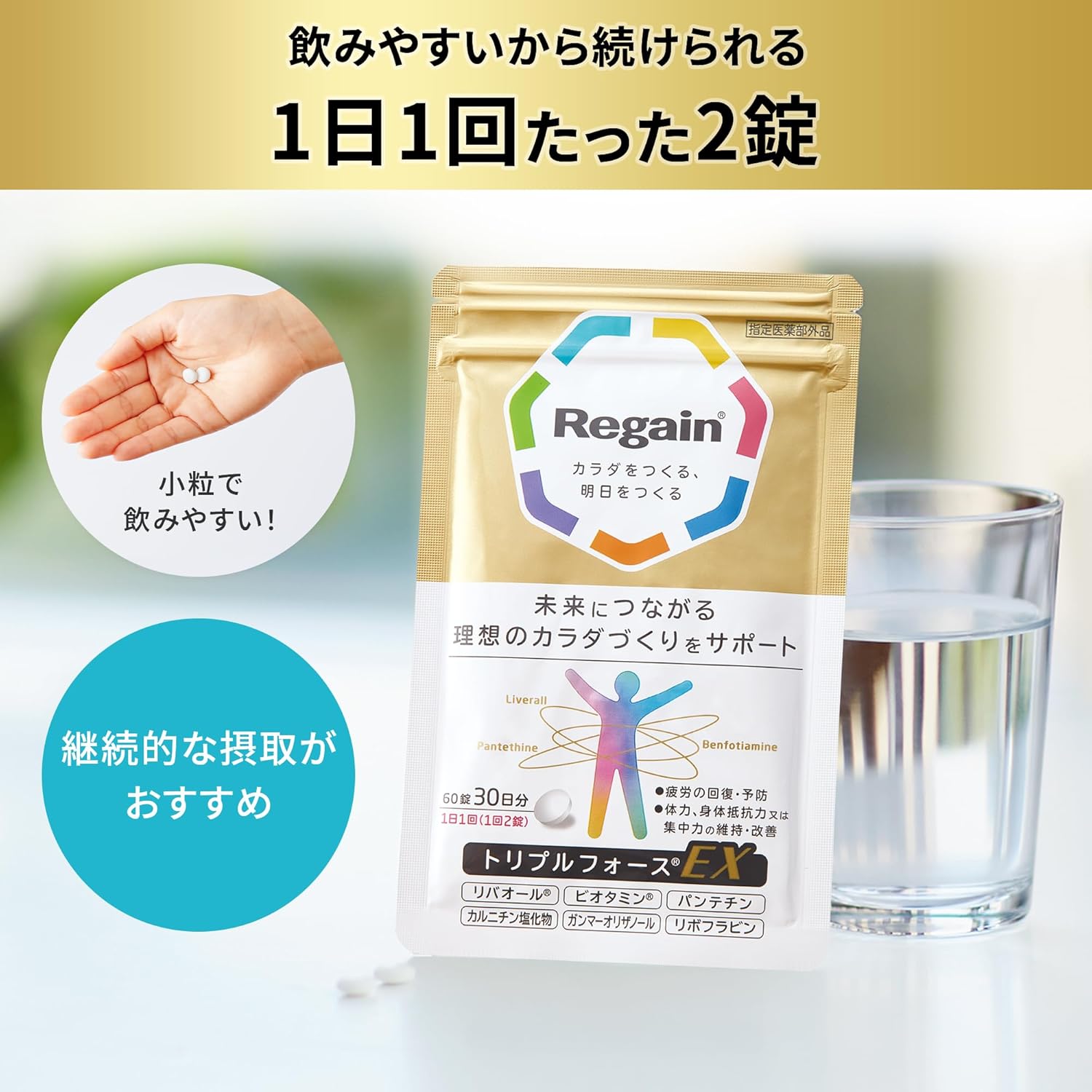 【公式】リゲイン トリプルフォースEX 1袋(30日分)[ 疲労回復 疲れ 脂肪 脂肪燃焼 糖化 リバオール ビオタミン パンテチン 健康 ヘルスケア 指定医薬部外品 ] 60錠 (3袋) Amazonで販売中