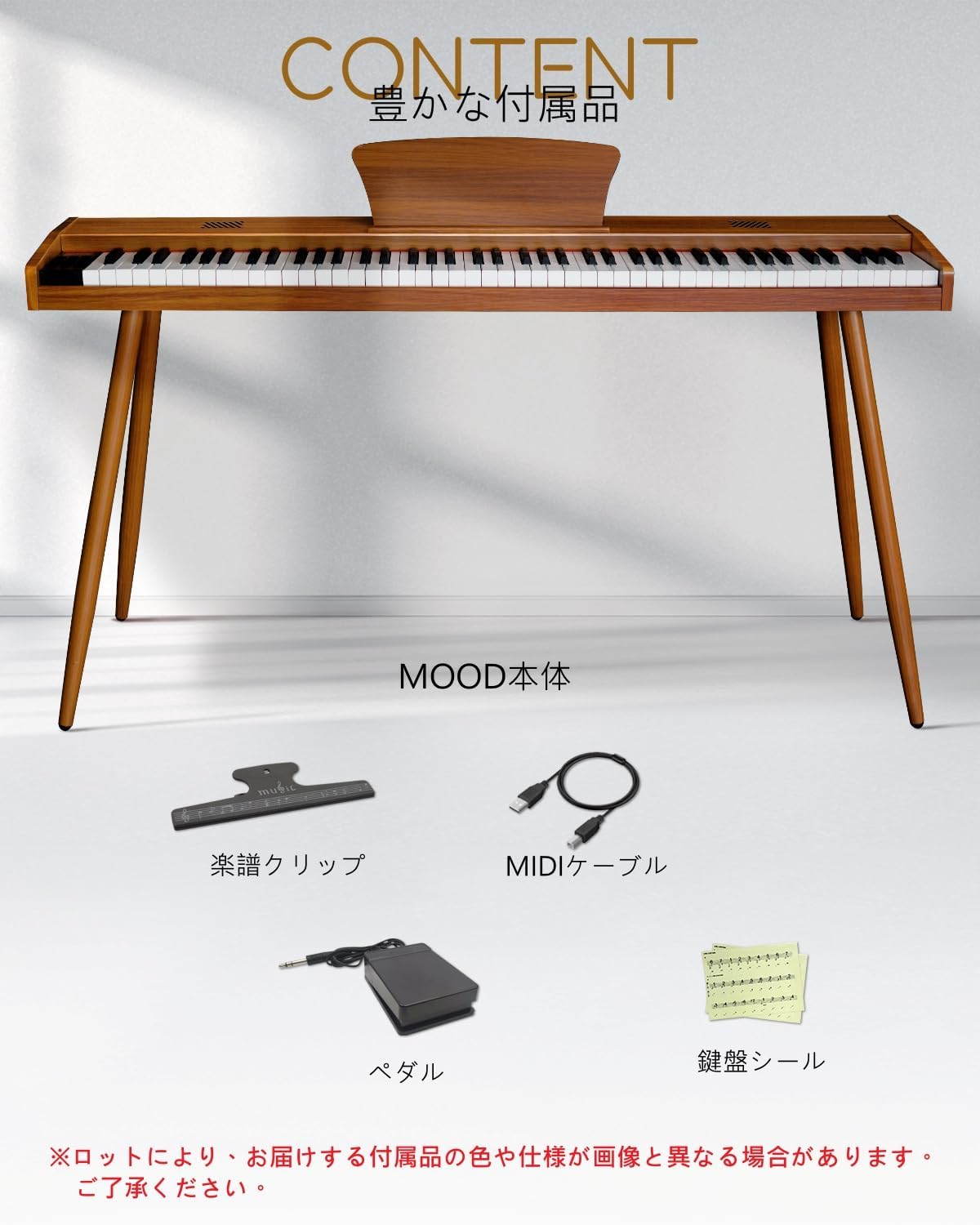 【Longeyeの最新作、MOODシリーズ木製電子ピアノが登場】家具調MOOD電子ピアノは木製一体型スタンドを特徴とし、美しいデザインと優れた音楽性を融合させました。部屋のインテリアと一体化し、お部屋に絶妙なアクセントを加えます。▶▶参照動画:https://www.youtube.com/watch?v=eB0JkvPHtkQ&t=401s