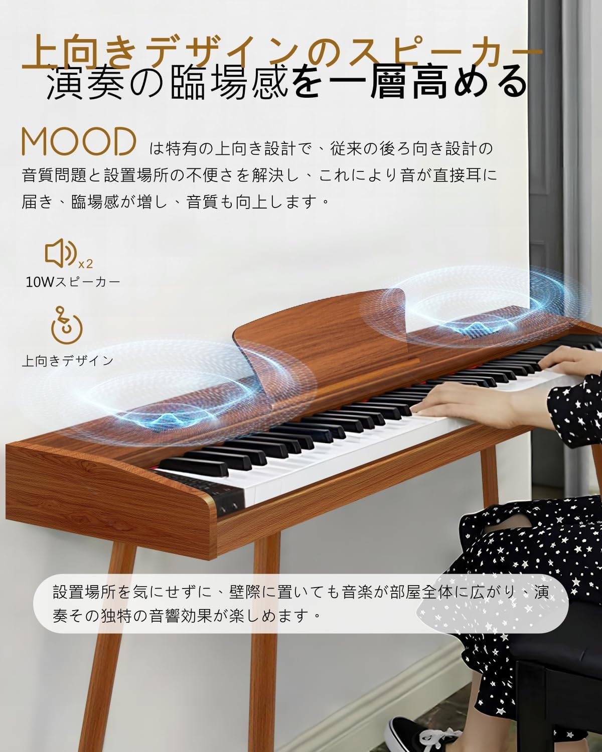 【新木製モデル 家具調ピアノ】Longeye ロンアイ 電子ピアノ 88鍵盤 MOOD スタンド一体型 10W出力 日本語表記 MIDI対応 二つヘッドホン同時使 レトロ風 10mmストローク 380種類音色 移調 DREAM音源 初心者 練習にピッタリ 日本語版説明書 Amazonで販売中