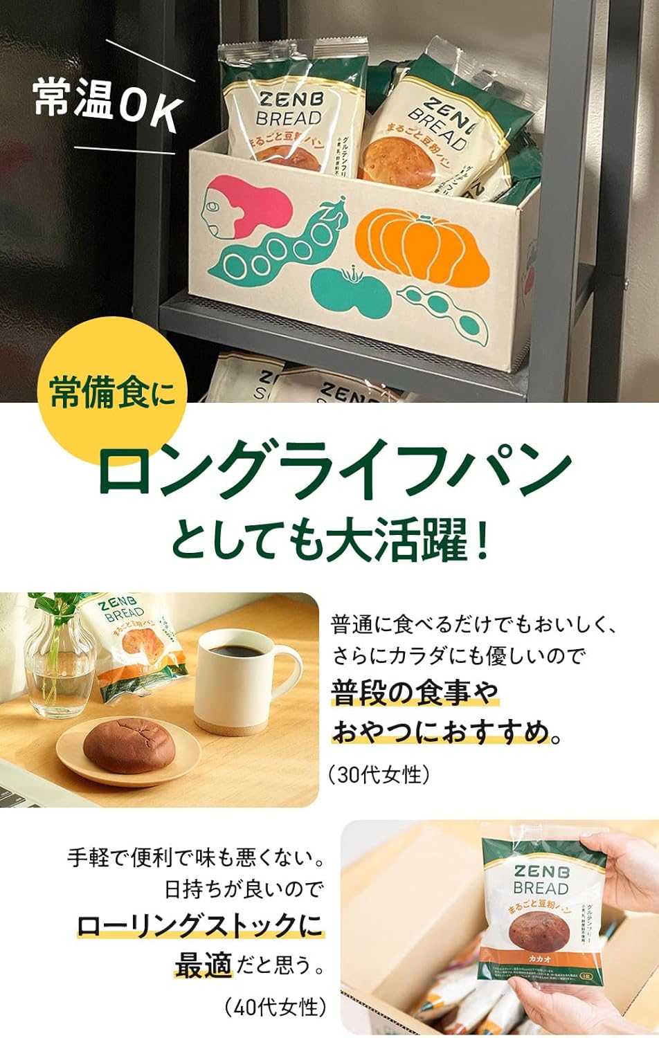 🍞【ロングライフパン】常温配送・常温保存OK。賞味期限は製造から4カ月。※ご注文から約30日以上の賞味期限の商品をお届けします。さらに、封を開けてそのまま、食べたいときにすぐに食べられる常備食として大活躍。 🍞【ふっくら食感、やさしい味わい】まるごと黄えんどう豆粉をメインにパン酵母と乳酸菌で発酵させて焼き上げる独自製法によって、ふっくら柔らかな食感、やさしいおいしさに仕上げました。