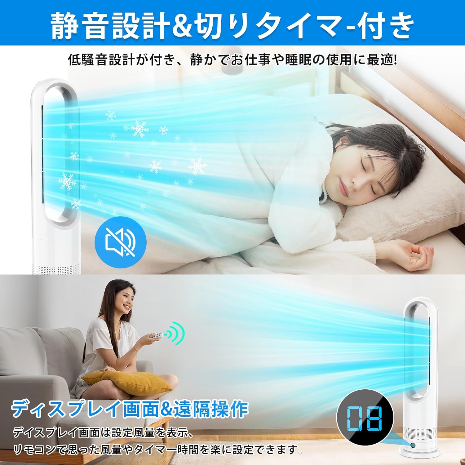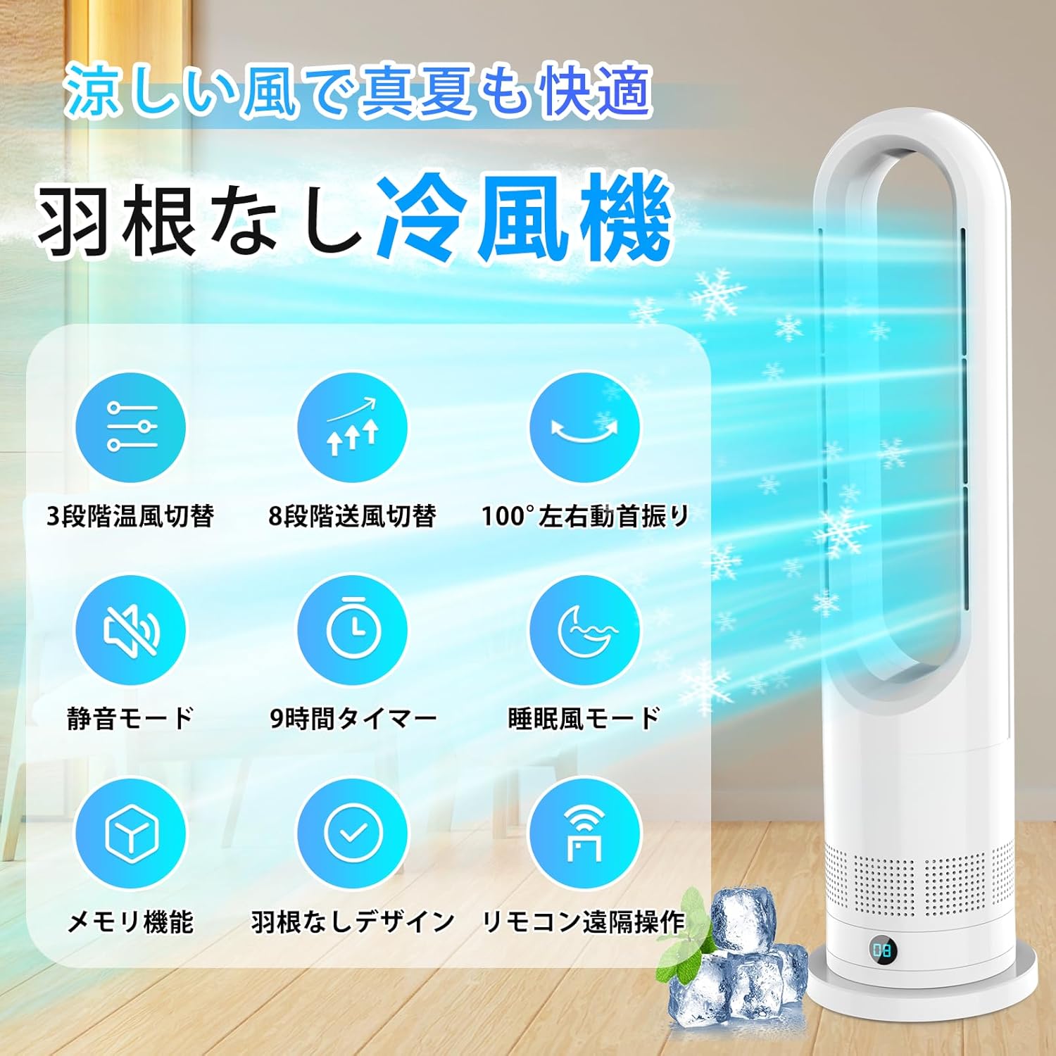 【2025最新進化】扇風機 タワーファン ファンヒーター【冷暖両用&冷風機 羽なし】スリム 羽根無し 冷風 3段階暖風・8段階冷風切り替え 100°左右首振り 1-9切りタイマー リモコン付き 切り忘れ防止 二重過熱保護 転倒OFF 省エネ 軽量 持ち運び便利 部屋 洗面所 脱衣所適用 スポットクーラー 冷暖房扇風機 寒さと熱中症対策 PSE認証済み 日本語取扱説明書 Amazonで販売中