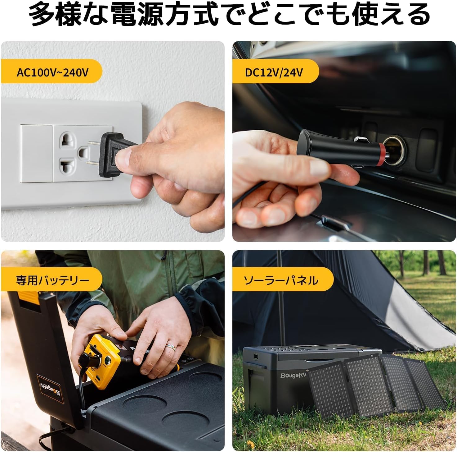 シガーソケットもAC電源も使えるから、炎天下のキャンプや車中泊では欠かせないポータブル冷蔵庫です。