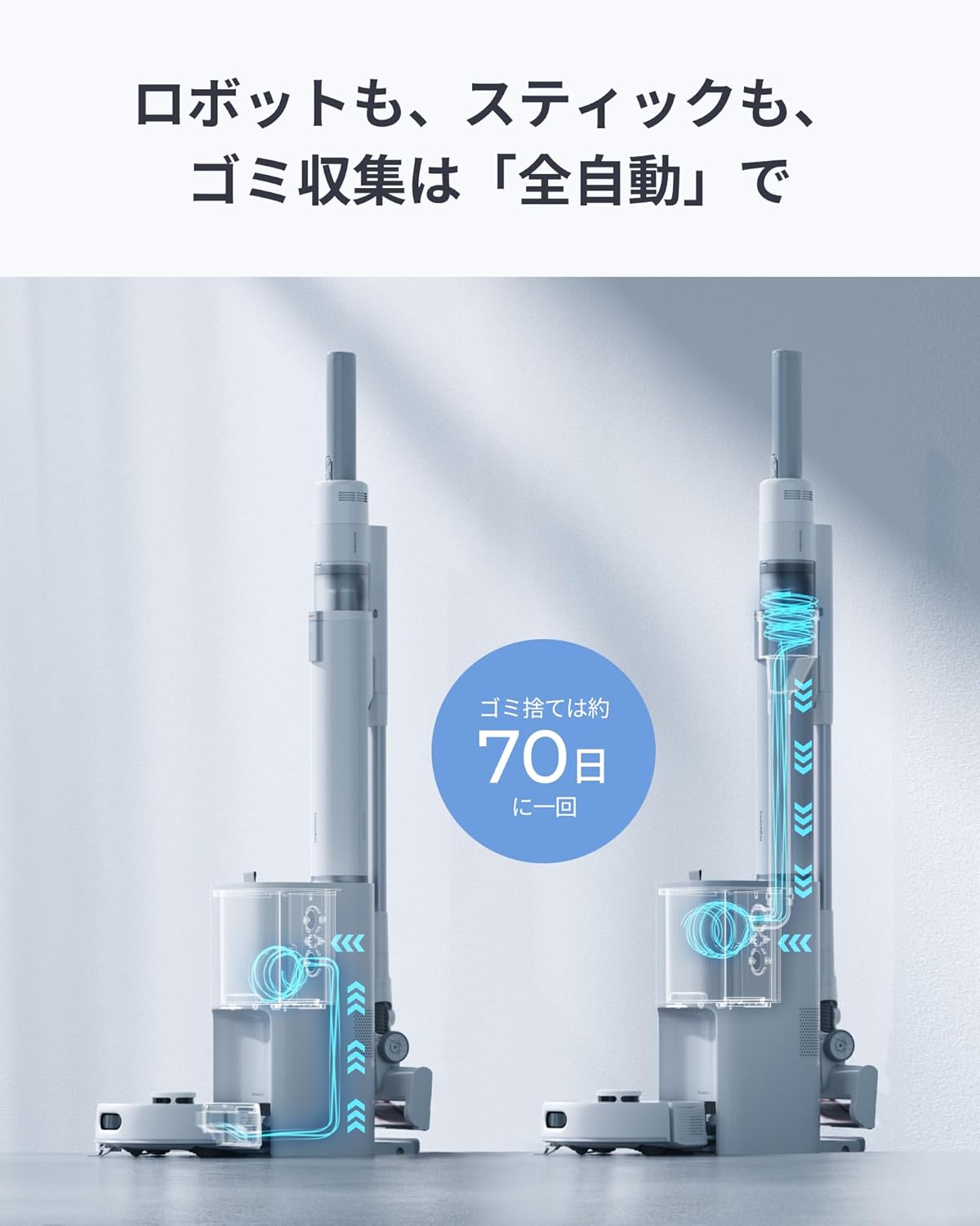 買って正解でした。サイズがとてもコンパクトで、場所を取らないのに掃除機としての働きはしっかりしています。ロボットもスティックも、それぞれ使い分けられて便利ですし、ゴミ捨ての手間も少なく済むのが助かっています。