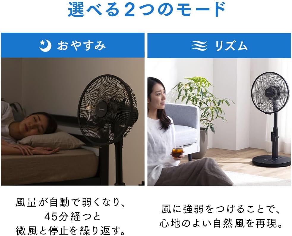 リズム風モードで風量の強さをゆっくり変化させて自然に近い風を再現できます。