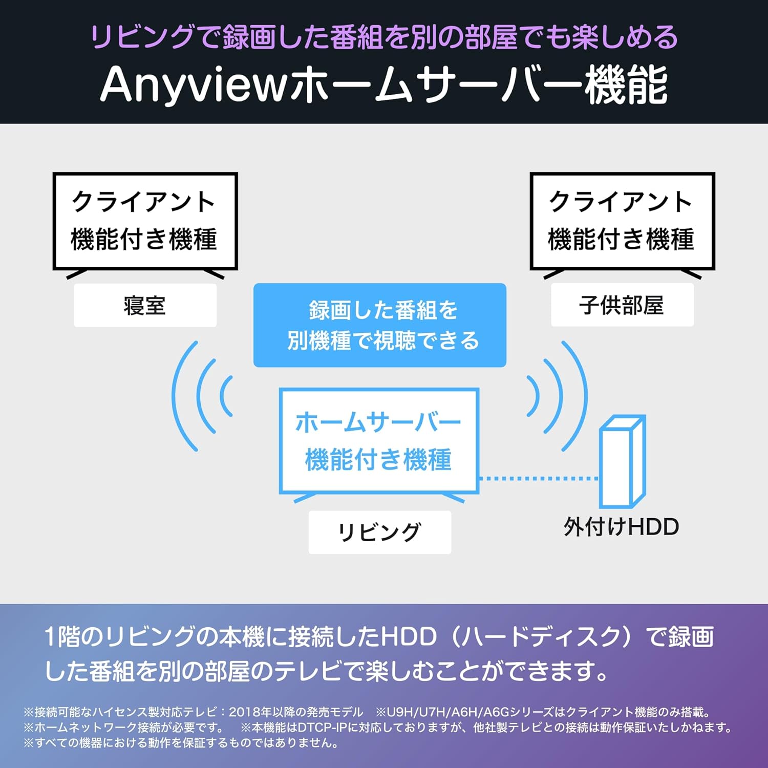 1階のリビングで録画した番組を、同じネットワーク内にある他の部屋のハイセンステレビでも視聴可能にする便利な機能です。