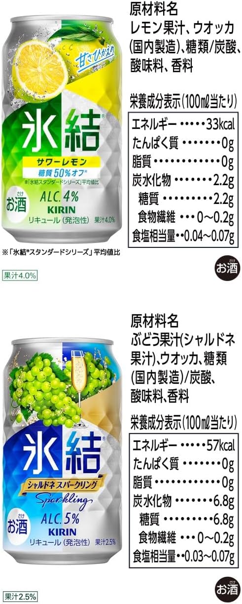 セット内容:【キリン 氷結】 シチリア産レモン350ml×2、グレープフルーツ350ml×2、パイナップル350ml×2、オレンジ350ml×2、シャルドネスパークリング350ml×2、サワーレモン350ml×2