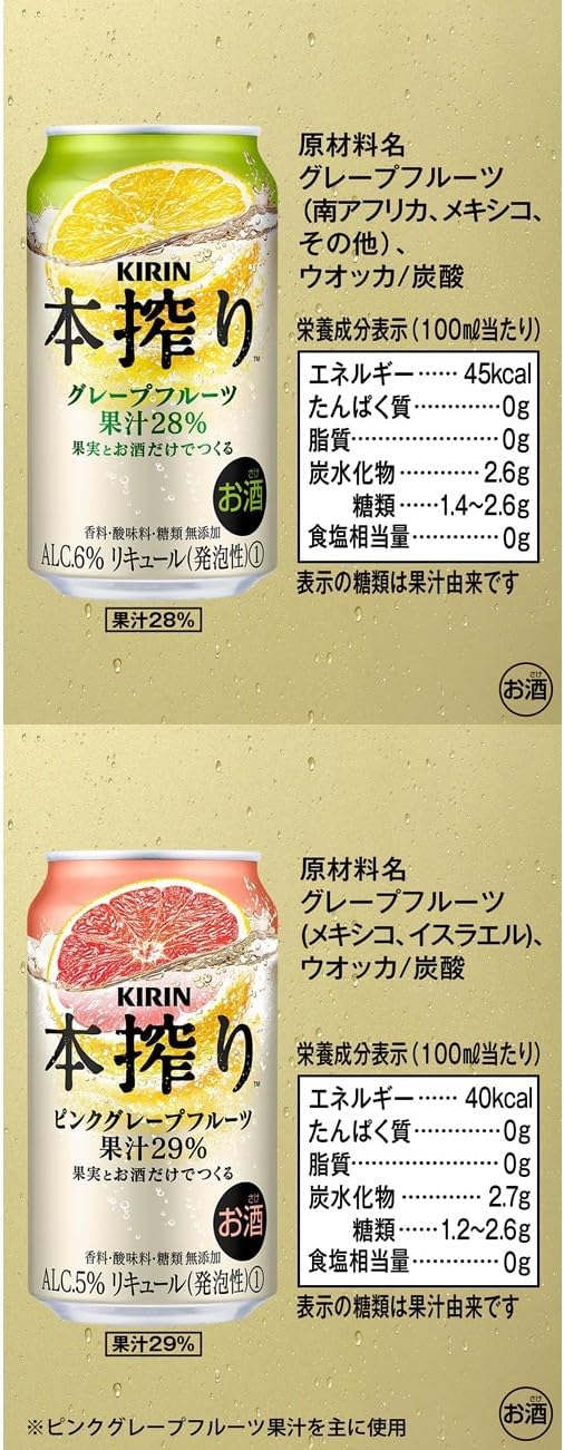 【キリン 本搾りチューハイ】グレープフルーツ350ml×2、レモン350ml×2、ピンクグレープフルーツ350ml×2、オレンジ350ml×2