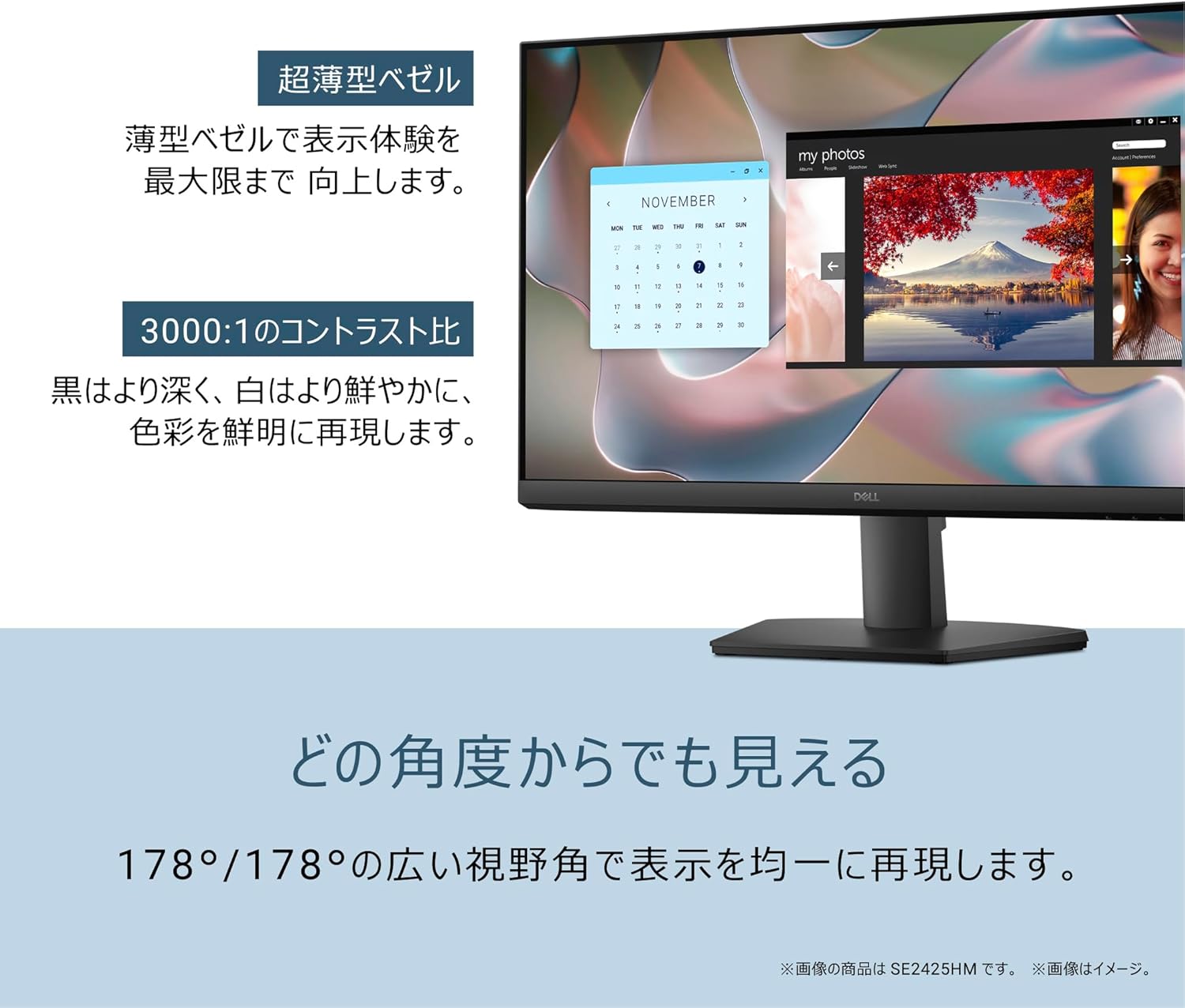 【どの角度からでも見える】超薄型ベゼルで表示体験を向上し、178°/178°の広い視野角で表示を均一に再現します。また、3000:1のコントラスト比で黒はより深く、白はより鮮やかに、色彩を鮮明に再現します。