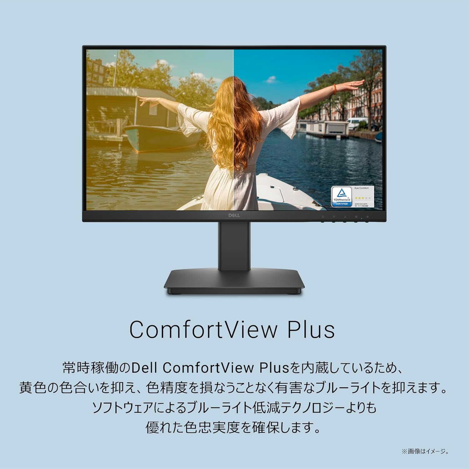 【表示体験の向上】TÜV Rheinlandの3つ星認定を取得した表示体験を備え、100Hzという高リフレッシュレートであらゆる作業に対応できる、21.5インチ モニター。常時稼働のDell ComfortView Plusを内蔵しているため、黄色の色合いを抑え、色精度を損なうことなく有害なブルーライトを抑えます。