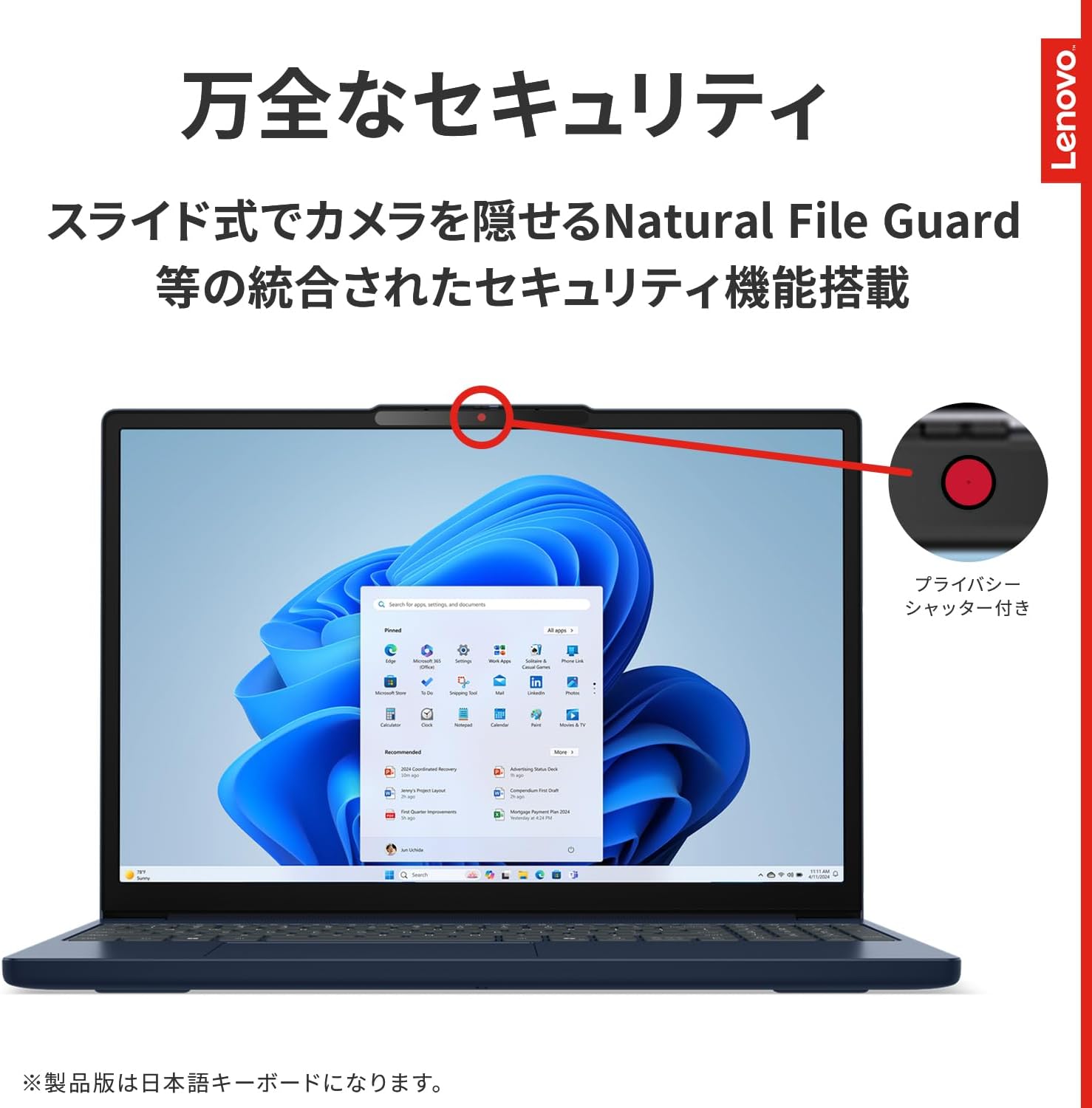 内蔵カメラ:あり (前面:HD 720p カメラ、プライバシーシャッター付き)
