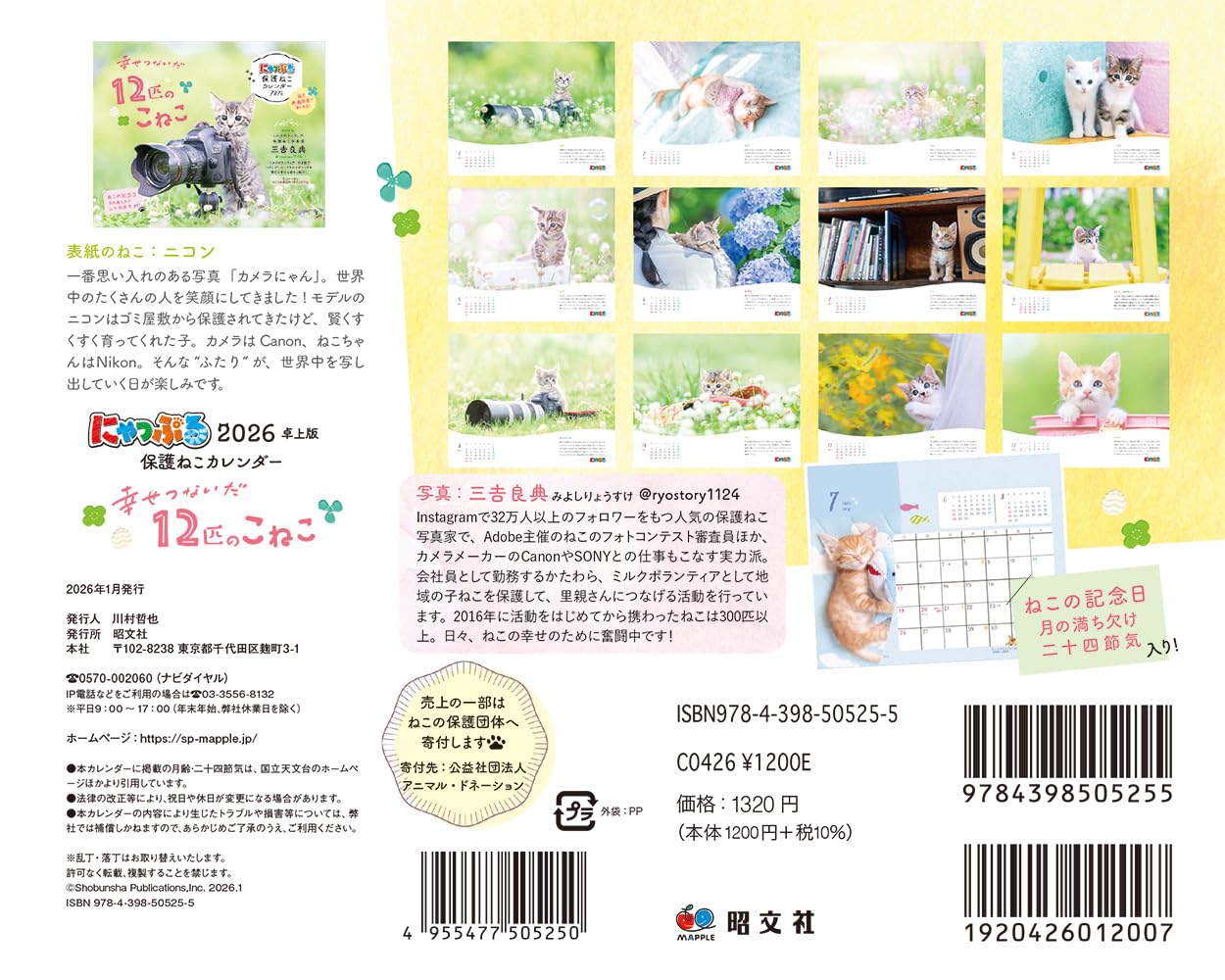 にゃっぷる 保護ねこカレンダー2026 卓上版「幸せつないだ12匹のこねこ」/ねこの保護団体への寄付つき Amazonで販売中