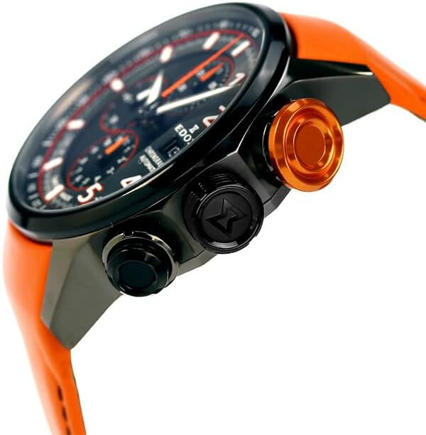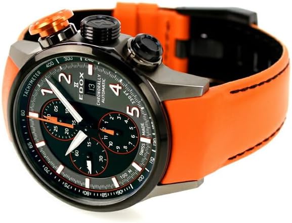 エドックス クロノラリー チタン クロノグラフ スイス製 自動巻き メンズ 腕時計 01129-TGNOCO-GNO EDOX CHRONORALLY アナログ ブラック グレー オレンジ 革ベルト ◆スイスの優秀な時計職人だったクリスチャン・リュフリ・フルーリーは、妻ポーリーンの誕生日に彼自身がデザインして作った懐中時計をプレゼントします。これがきっかけとなり、1884年にエドックスを設立しました。過去から現在まで積み上げてきた技術的裏付けと、独自性の高い時計を作るノウハウを1世紀以上かけて熟成したからこそ、群雄割拠のスイス時計業界において確固たる地位を築いています。 レースのスリリングな世界観とラリースピリットを体現するCHRONORALLY。時計が誤って外されるのを防ぐセキュリティシステムを備えた新しい独自のバックル『マスターロックバックル』を搭載。スチールと同等の強度を持ちながら 45%軽量で耐腐食性が高いチタンを組み込んでいます。高密度で引張強度が高いため、アクティブなライフスタイルに最適な素材です。 機械式腕時計