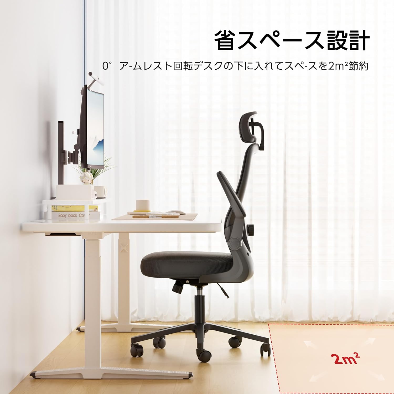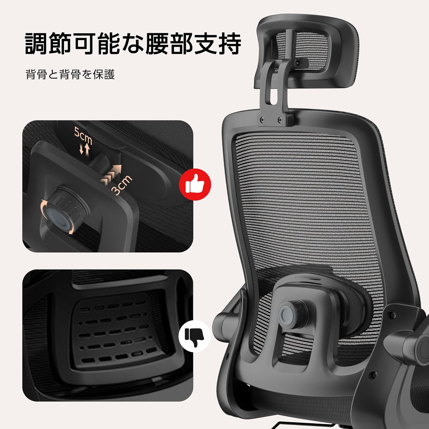 オフィスチェア 椅子 デスクチェア 疲れない人間工学 跳ね上げ式アームレスト 2Dヘッドレスト 腰サポート 通気性メッシュ デスクチェア 長時間 座れる お宅 在宅ワーク pcチェア メッシュ パソコン ワーク 事務椅子 (ブラック) Amazonで販売中