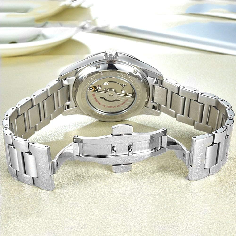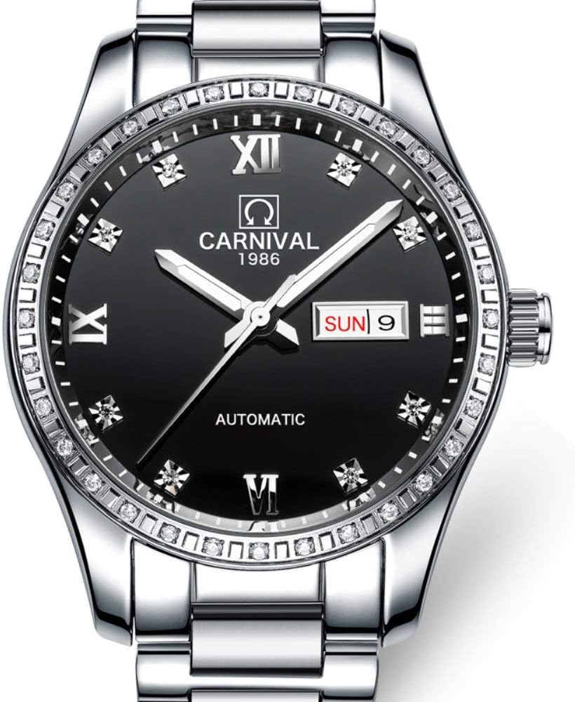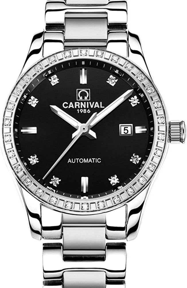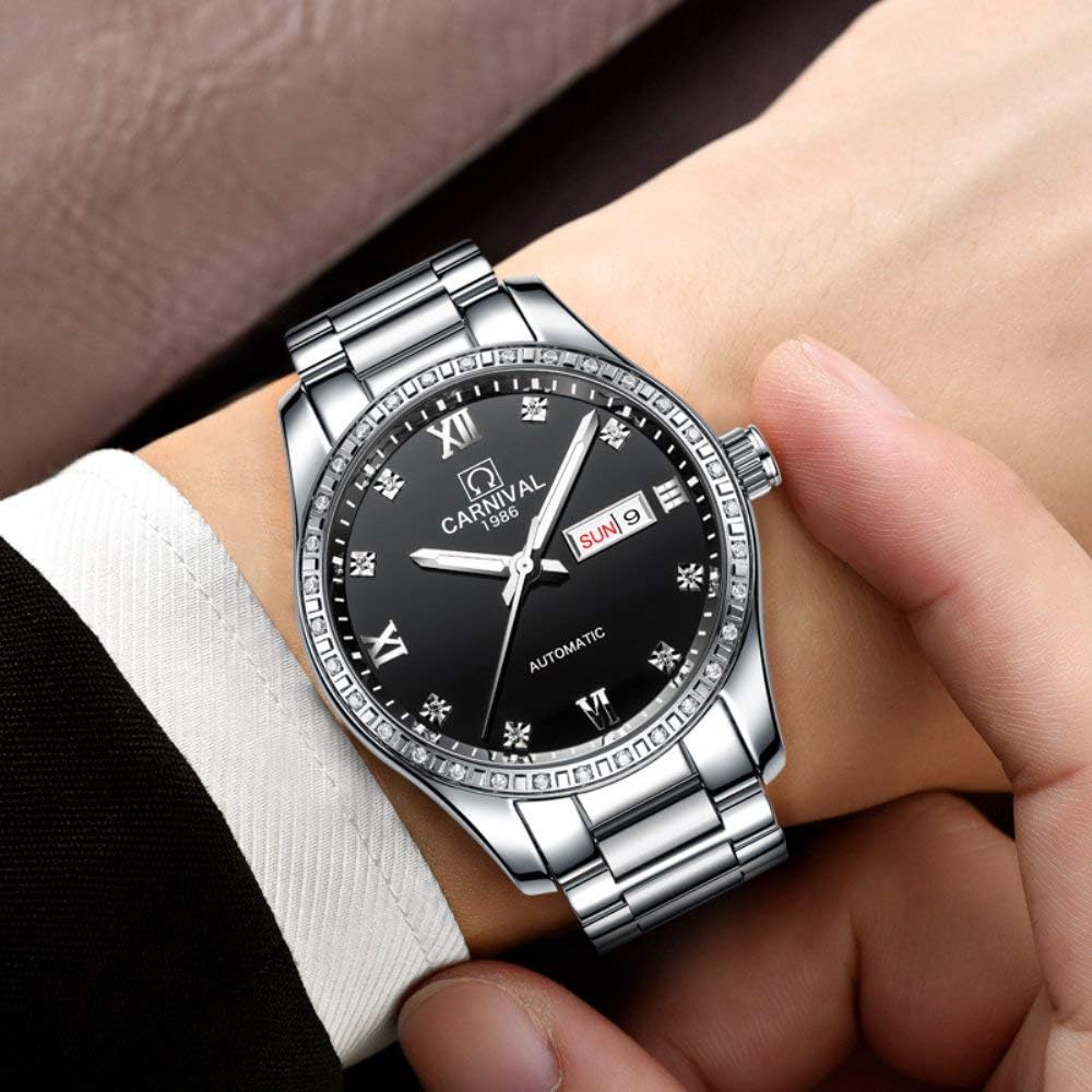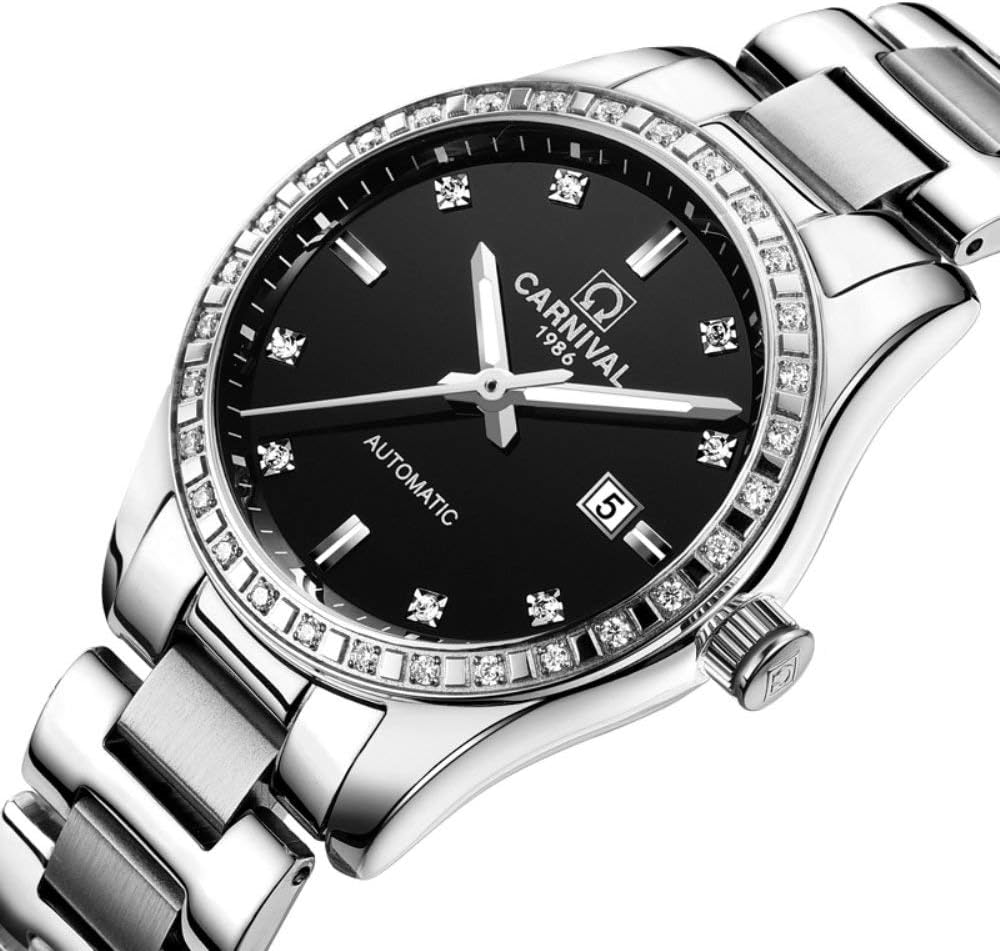 カップルウォッチ メンズ レディース 自動機械式腕時計 ファッションベゼルインレー ラインストーン 彼女または彼用 2個セット Silver Black Dial Amazonで販売中