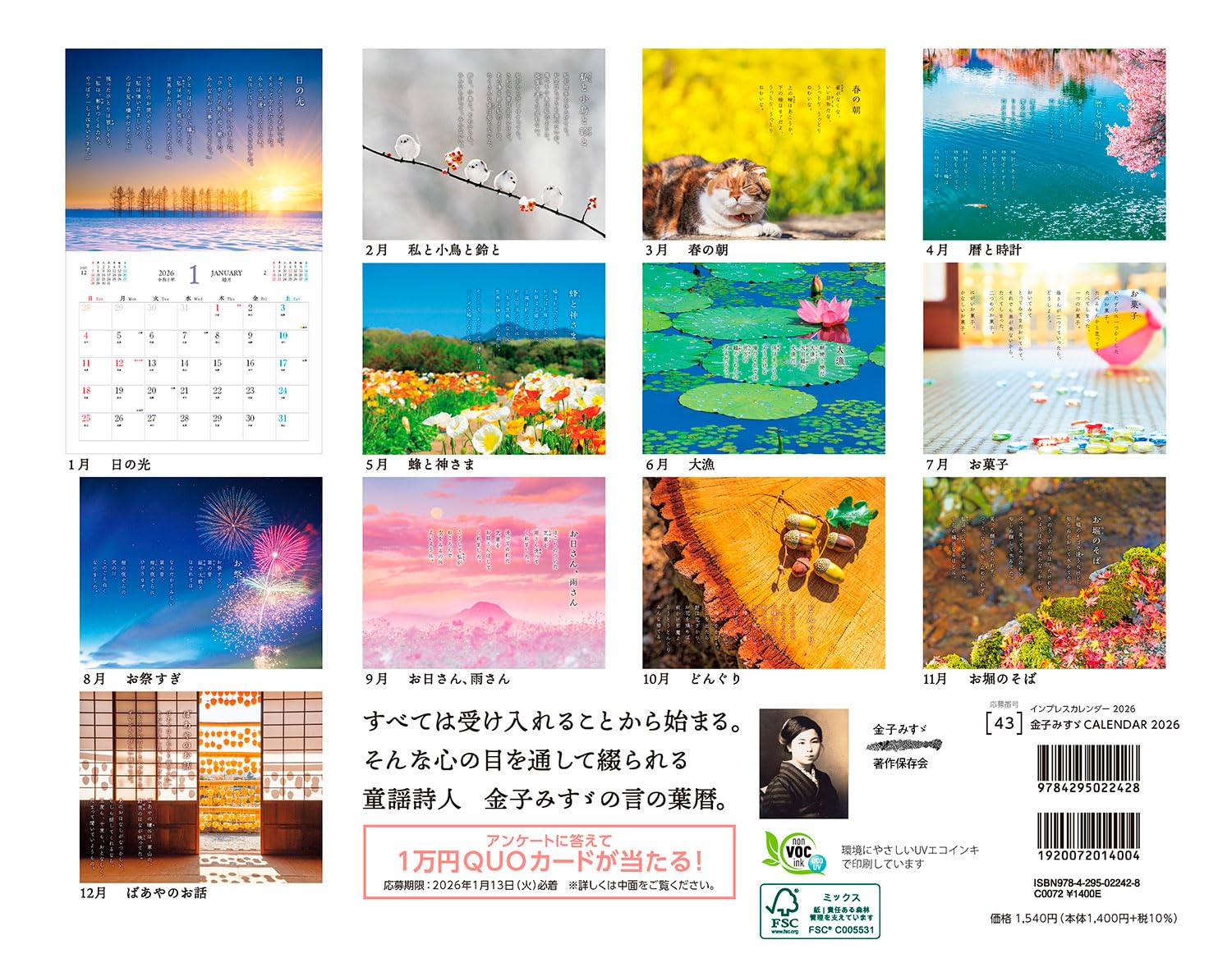 カレンダー2026 金子みすゞ CALENDAR (月めくり/壁掛け/600mm×380mm) (インプレスカレンダー2026) Amazonで販売中