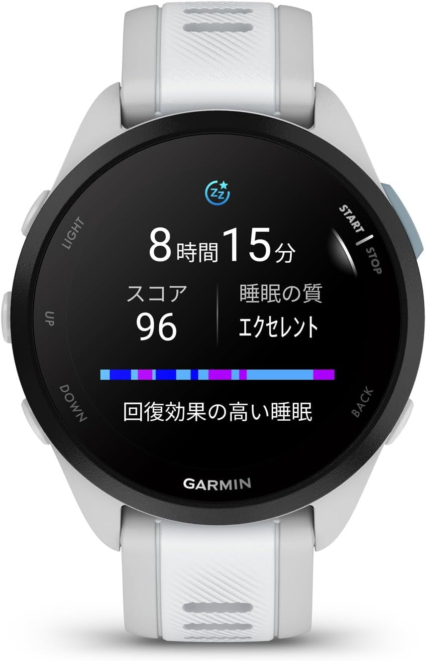 【決済機能】手ぶらで走りに行っても、Suica機能搭載でスマートに支払い。【健康管理機能】睡眠スコア測定やストレスモニタリング、BodyBattery機能で一日の体力を可視化します。