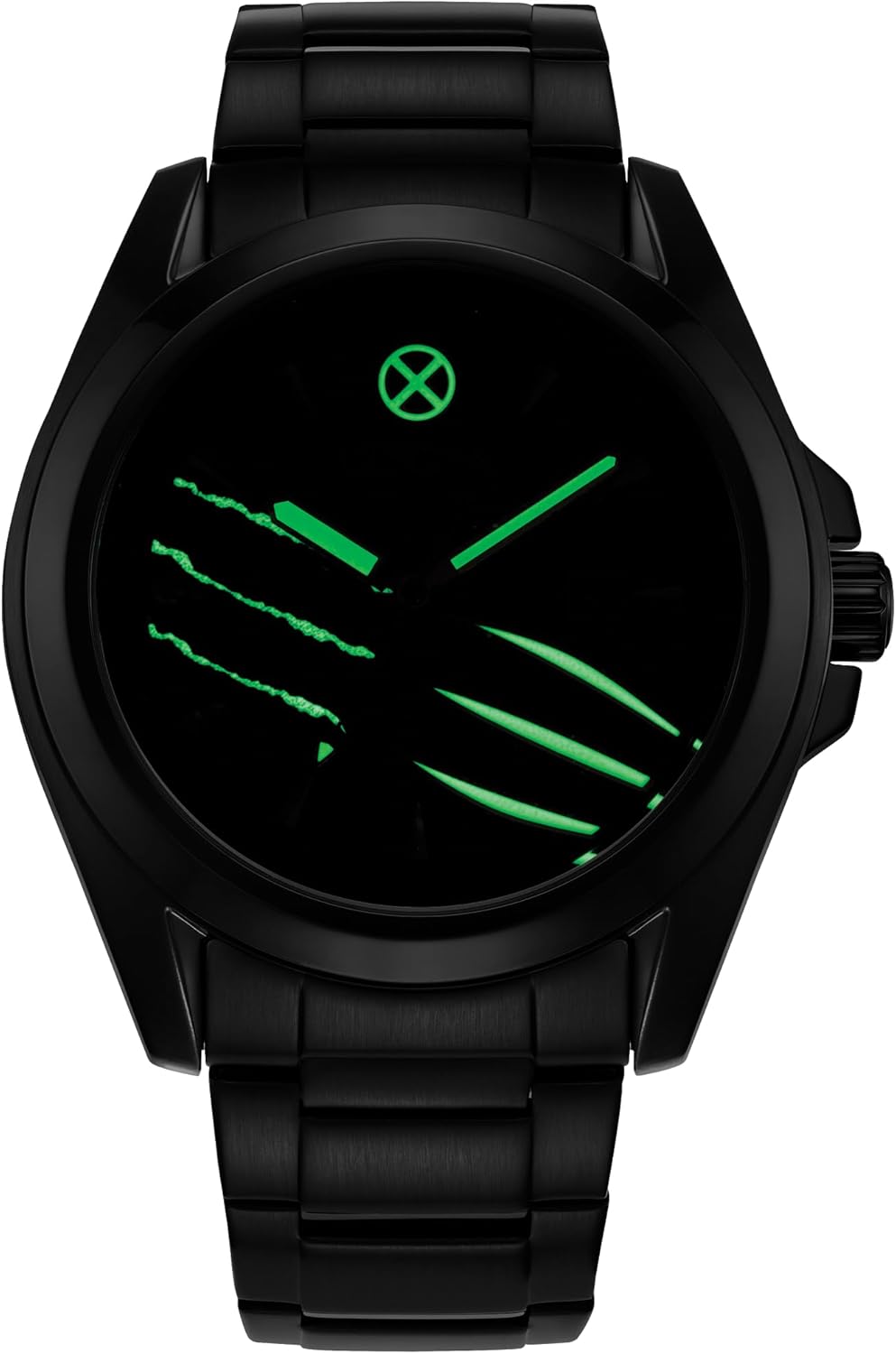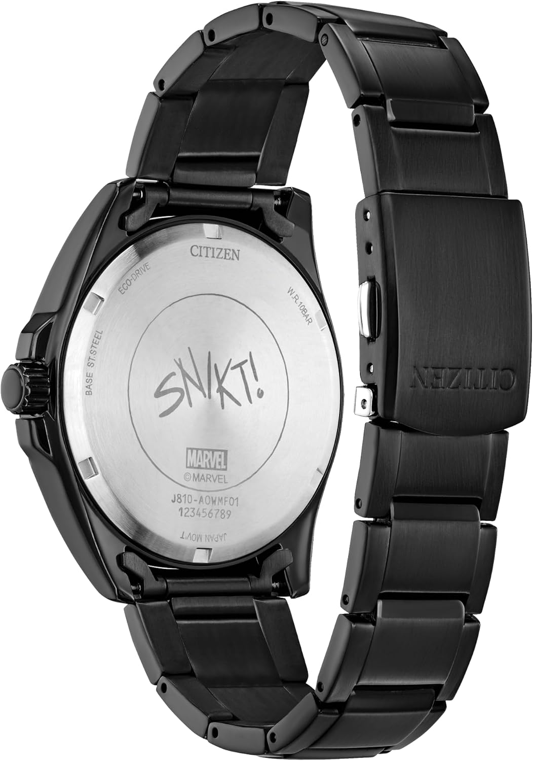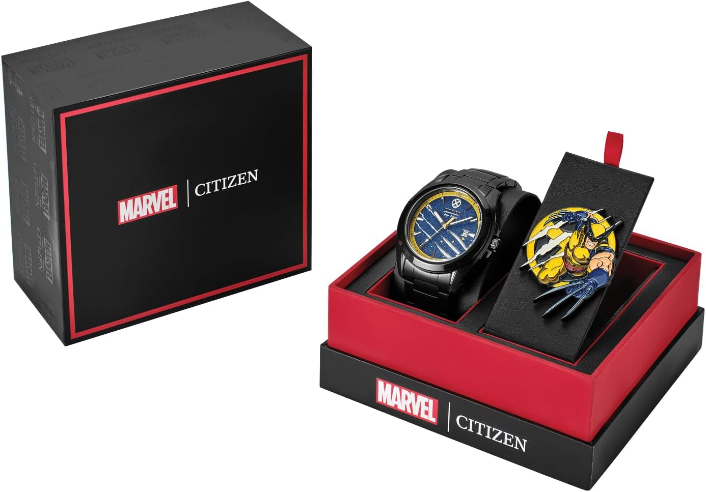 SNIKT! マーベル | シチズンコレクションで最初のX-Menウォッチはウルヴァリン(別名:Logan、出生名:James Howlett)です。 動物の感覚、超人的な強さ、癒しの力を持つこの時代を超えたミュータントは、完全に発光する致命的な格納式爪によって青い文字盤に劇的に表現されています。 イエローのアウターリング、シルバートーンのマーカー、夜光針、12時の位置にX-Menのロゴが印象的な外観を完成させます。 ケースバックにはウルヴァリンのロゴと「SNIKT!」が刻まれており、爪が飛び出す恐ろしい音がします。 43mmのケースとブレスレットは、ブラックイオンメッキステンレススチール(架空のアダマンティアンではありません)で作られています。ボックスセットにはお揃いのコレクターピンが付いています。 バーサーカーの怒りに燃えるウルヴァリンとは異なり、この時計はエコドライブテクノロジーを採用したライトで駆動され、バッテリーは必要ありません。 © 2023 MARVEL。