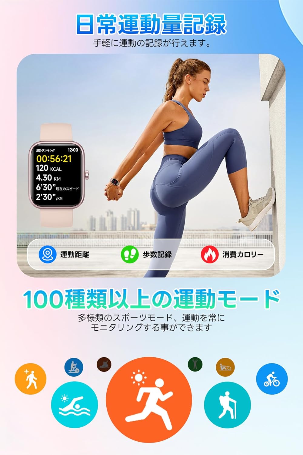 ✅【健康管理をもっと身近に!日常を支える多機能スマートウォッチ】スマートウォッチは、歩数・移動距離・カロリー消費量・睡眠の質・ストレスレベルなどを24時間モニタリングし、あなたの毎日の健康をしっかりサポートします。座りすぎを防ぐリマインダーや呼吸ガイド、さらに女性向けの月経周期管理機能も搭載。健康志向のライフスタイルをサポートするだけでなく、ストップウォッチ、タイマー、音楽コントロール、明るさ調整、スマホ探索など日常生活に役立つ多彩な機能も充実。仕事にもプライベートにもぴったりの一台です。
