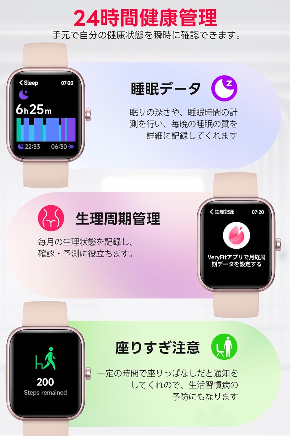 ✅【適応デバイス&日本語アプリ&安心保証】smart watch はAndroid 6.0、iOS9.0、及びBluetooth 4.0以上に対応しています。日本語アプリは、専用APP「VeryFit」と同期させると、詳しいデータが日別に確認できる。★購入日から1年のメーカー保証を提供します。本商品についてご不明な点がございましたら、お気軽にご連絡ください。24時間以内に返事します。