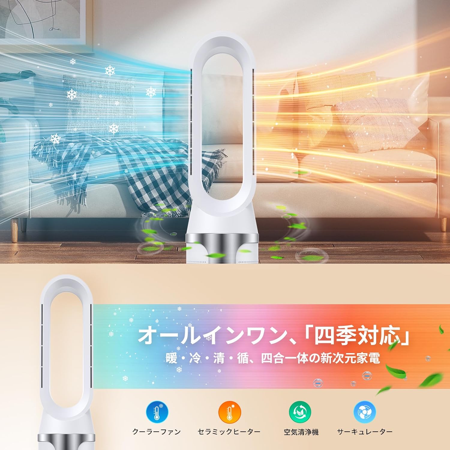 セラミックヒーター【2025業界初!暖房・冷房・空気清浄・空気循環 4-in-1&四季対応】 セラミックファンヒーター スリム扇風機・タワーファン 暖房器具 ECO省エネ 【革新PTC+グラフェンコート1秒瞬熱 熱風循環全室暖房】3段暖風 15~35℃調節 1~9Hタイマー 静音 左右90°/上下15°首振り 過熱保護 転倒OFF 脱衣所/トイレ/寝室/リビンク PSE 贈り物 2年保証 Amazonで販売中