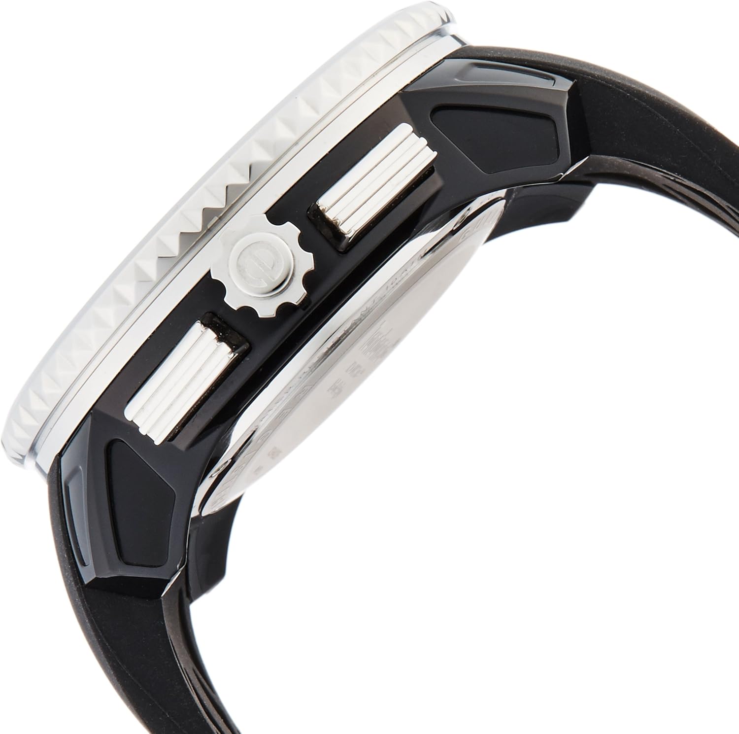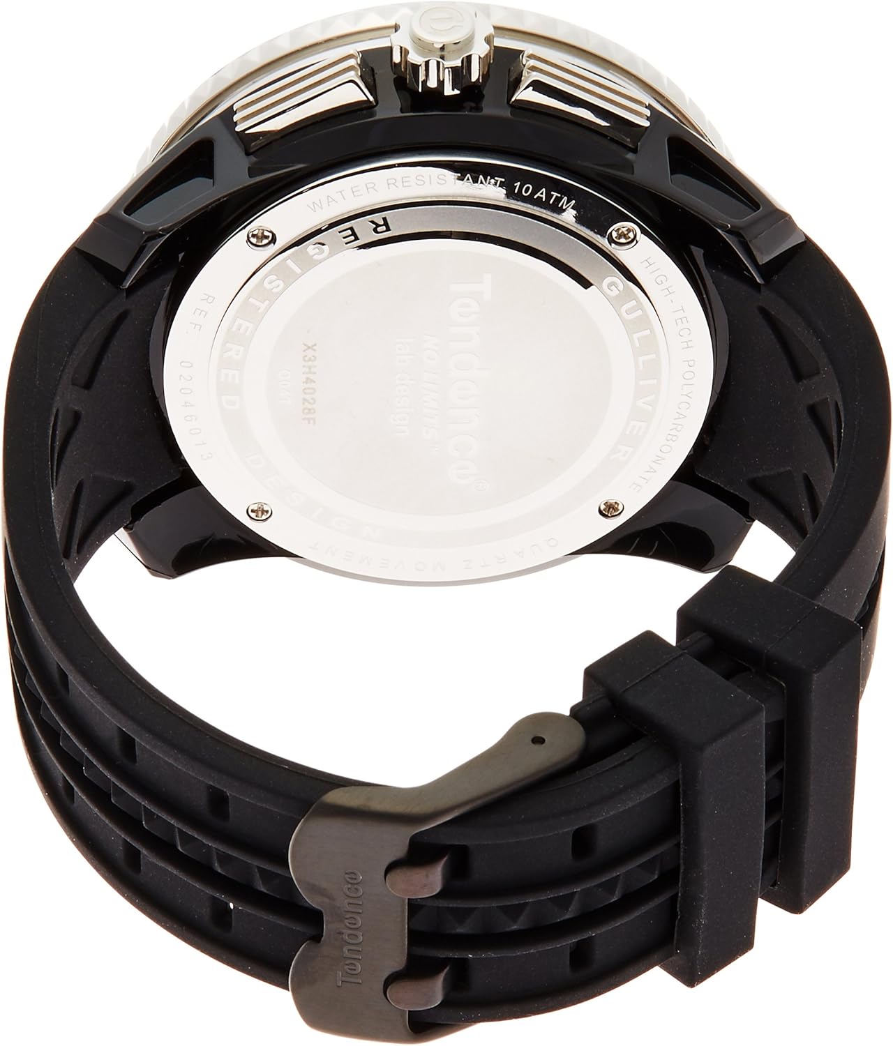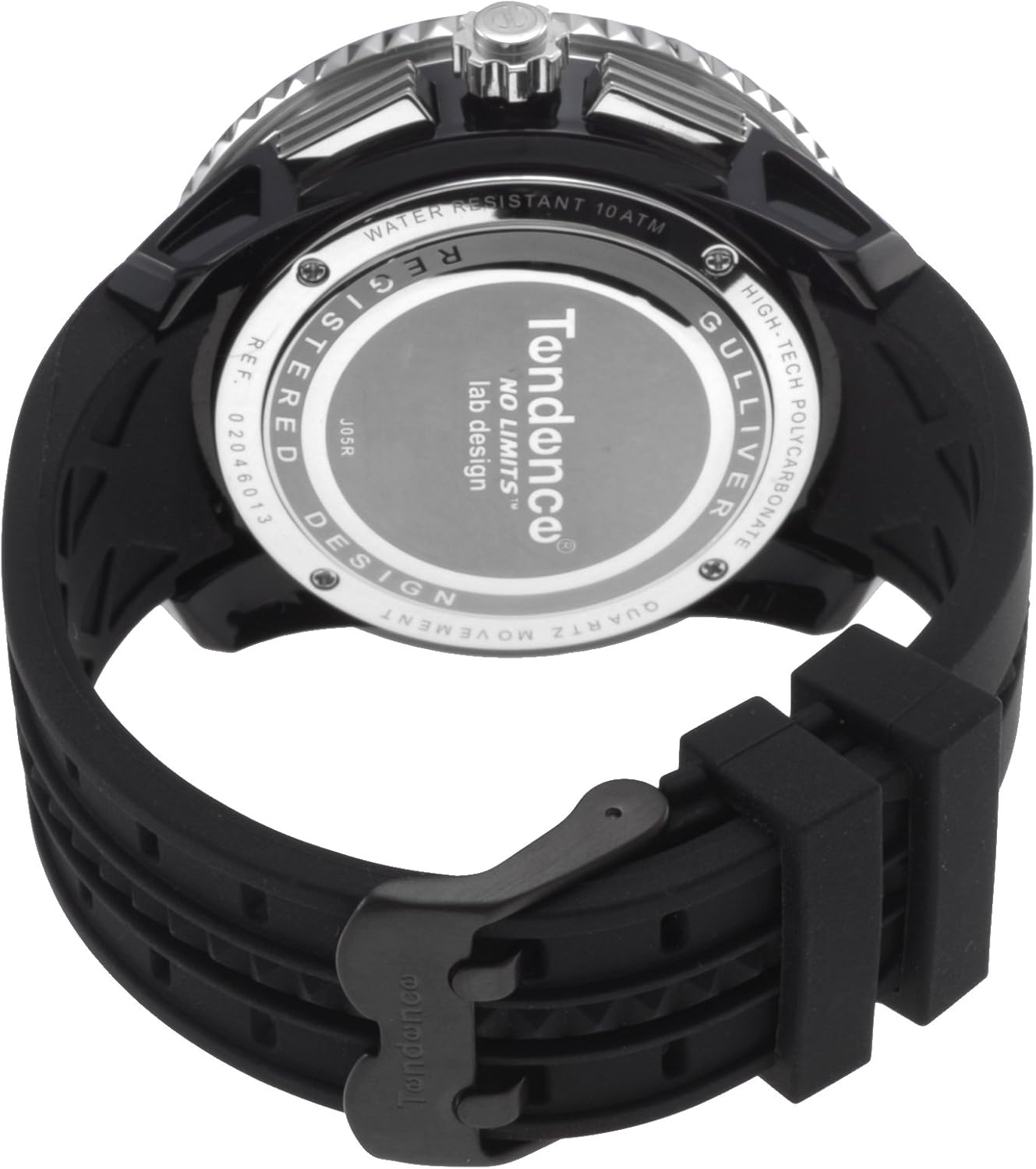 モデル紹介:テンデンスの代名詞モデルともいえるガリバーシリーズの「ガリバーラウンドクロノ」。フェイス幅50mmものビッグフェイスが最大の特徴で、圧倒的なインパクトがテンデンスの世界観を象徴しています。美しい光沢を施されたシルバーのベゼルとリューズが高級感を醸し出します。文字盤のインデックスは類を見ない3Dの立体的なデザインで、ビッグフェイスと見事にマッチし腕元で存在感を発揮します。シリコンラバーベルトを採用しているため、アクティブなシーンでも絶妙にフィットし抜群の着け心地。さらにクロノグラフを搭載しスポーツシーンなど実用性も兼ね備えています。深いブラックをベースとしシルバーのケースでスタイリッシュに極めた仕上りは、スポーツシーンのみならず、ビジネスやカジュアルシーンでも活躍するアイテムです。