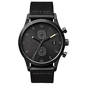 こちらはトリワのランセンクロノ(LANSEN CHRONO)コレクション。シンプルなデザインと合わさり、派手すぎず個性のある腕時計。針先と尾錠以外は全てブラックで統一されながらも、ダイヤルの立体感を持たせた仕上げ。針にゴールドのアクセントなど、黒という色の中で独特のコントラスト。クロノグラフ、カレンダーを搭載、10気圧防水で機能面も充実しています。程よい大きさの38ミリサイズは手首にしっくり収まってくれるサイズ。男女問わず楽しめるユニセックスモデルです。コーディネートを選ばないデザインでスーツスタイルからカジュアルまで幅広く活躍します。記念日や誕生日の贈り物にもおすすめです。