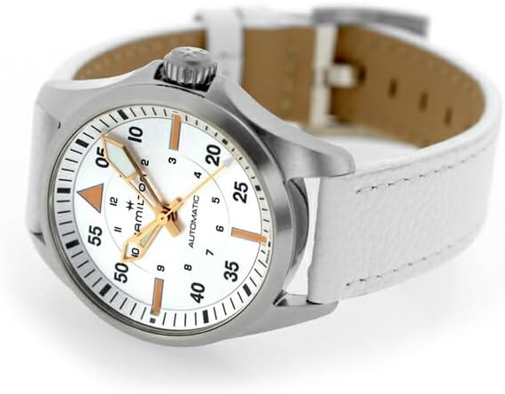 ハミルトン カーキ アビエーション カーキ パイロット オートマティック スイス製 自動巻き メンズ 腕時計 H76215850 HAMILTON KHAKI AVIATION Khaki Pilot Auto アナログ シルバー ホワイト 革ベルト ◆HAMILTON(ハミルトン)はアメリカ発祥の老舗ブランドです。創業翌年に誕生した懐中時計「ブロードウェイ・リミテッド」は、他の時計よりも正確に時を刻むことから鉄道用時計として採用されました。その後も航空用時計や軍用時計として採用されるなど、品質の高さと流行にながされない独自のデザインが世界中の人々に支持されています。 真の航空ファンのために作られた「カーキ パイロット」は、「カーキ」の探究心や冒険心を呼び起こします。この36mmのモデルは、ニヴァクロン製ヒゲゼンマイを備えた標準持続時間80時間のH-10自動巻きムーブメントを搭載し、より小さなサイズの腕時計を求めるトレンドに応えます。このモデルはコックピットに求められる精度を満足し、よりコンパクトなデザインのために空中や地上で活躍します。「カーキ パイロット」は、ホワイトのレザーストラップにシルバーホワイトダイヤルを組み合わせており、特殊なスーパールミノバ加工が施されています。 機械式腕時計