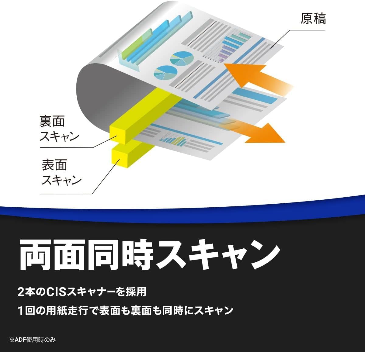 インターフェイス:USB、有線・無線LAN、Wi-Fi Direct対応、液晶3.5型タッチパネル、用紙トレイ2段(各最大250枚)、多目的トレイ(最大100枚)、最大給紙枚数/最大排紙枚数:600枚/100枚、ADF最大50枚、耐久枚数約30万ページまたは7年間の高耐久を実現