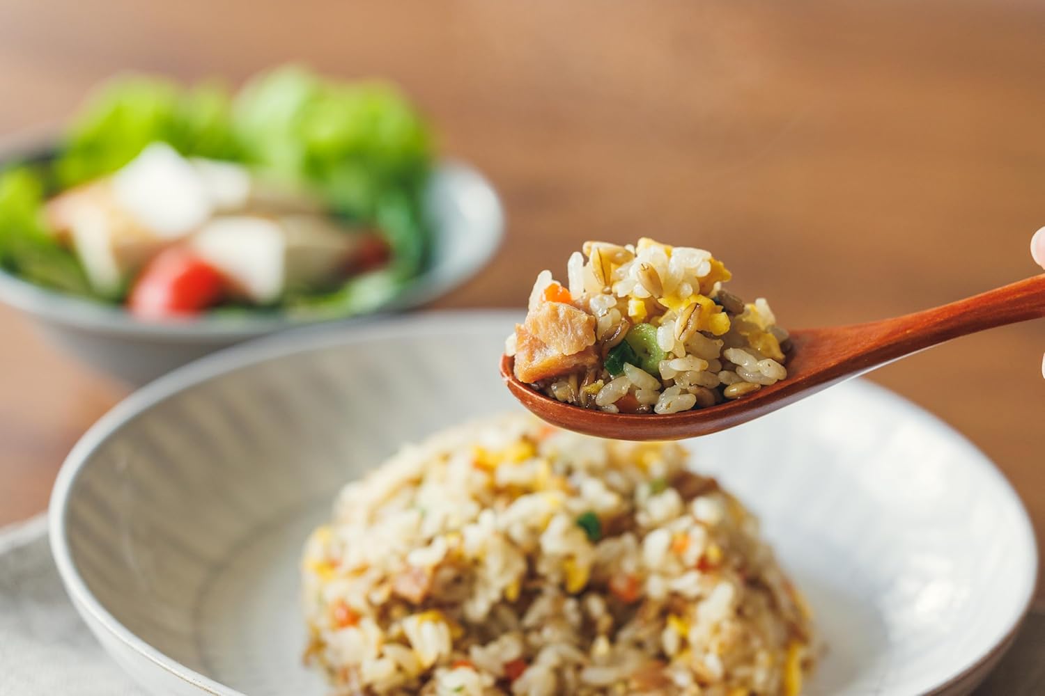スーパー大麦・バーリーマックスを使用した五目炒飯です。日々の生活の中で手軽に食物繊維を食事で美味しく補給できます。