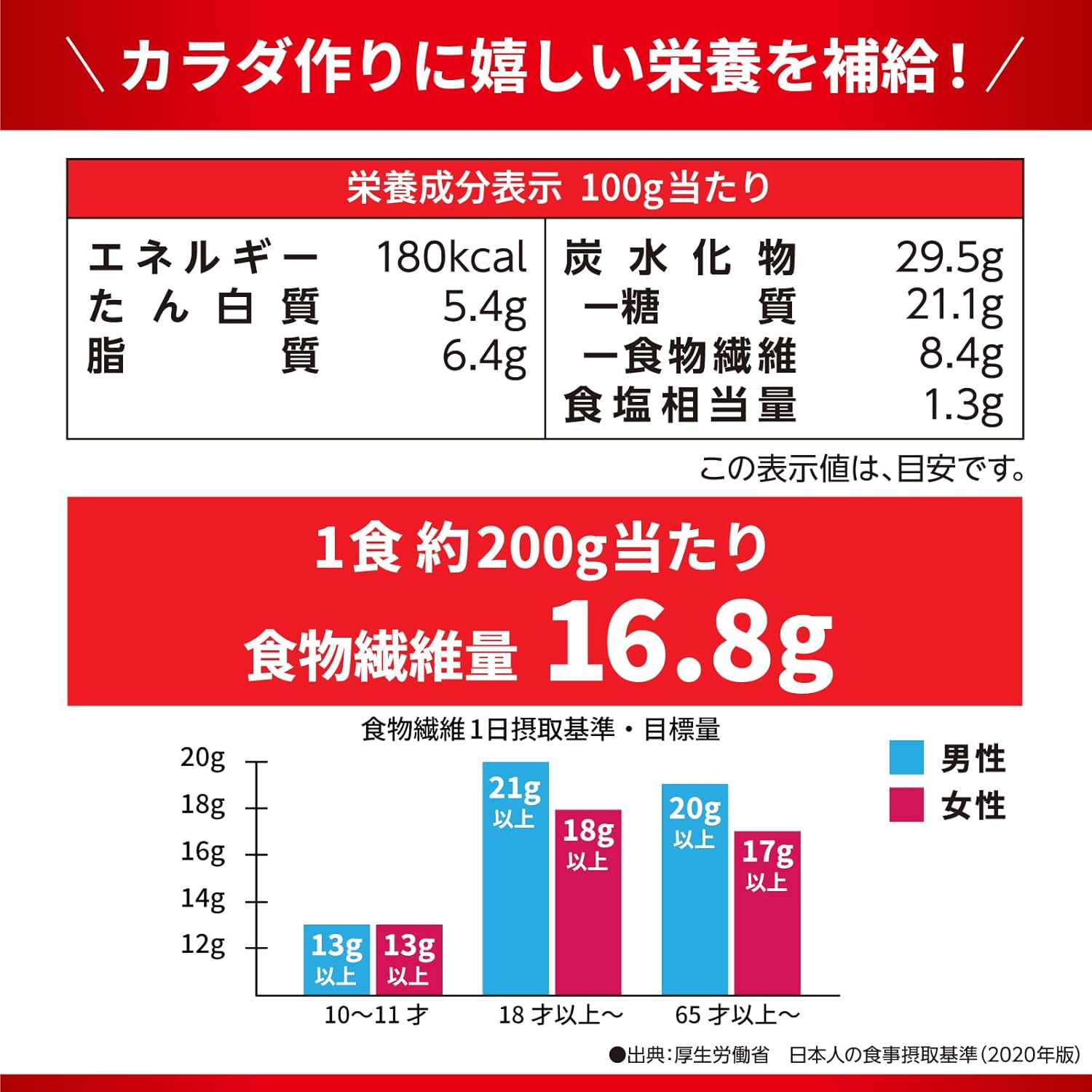 食物繊維量16.8g 1食(200g)当たりの場合