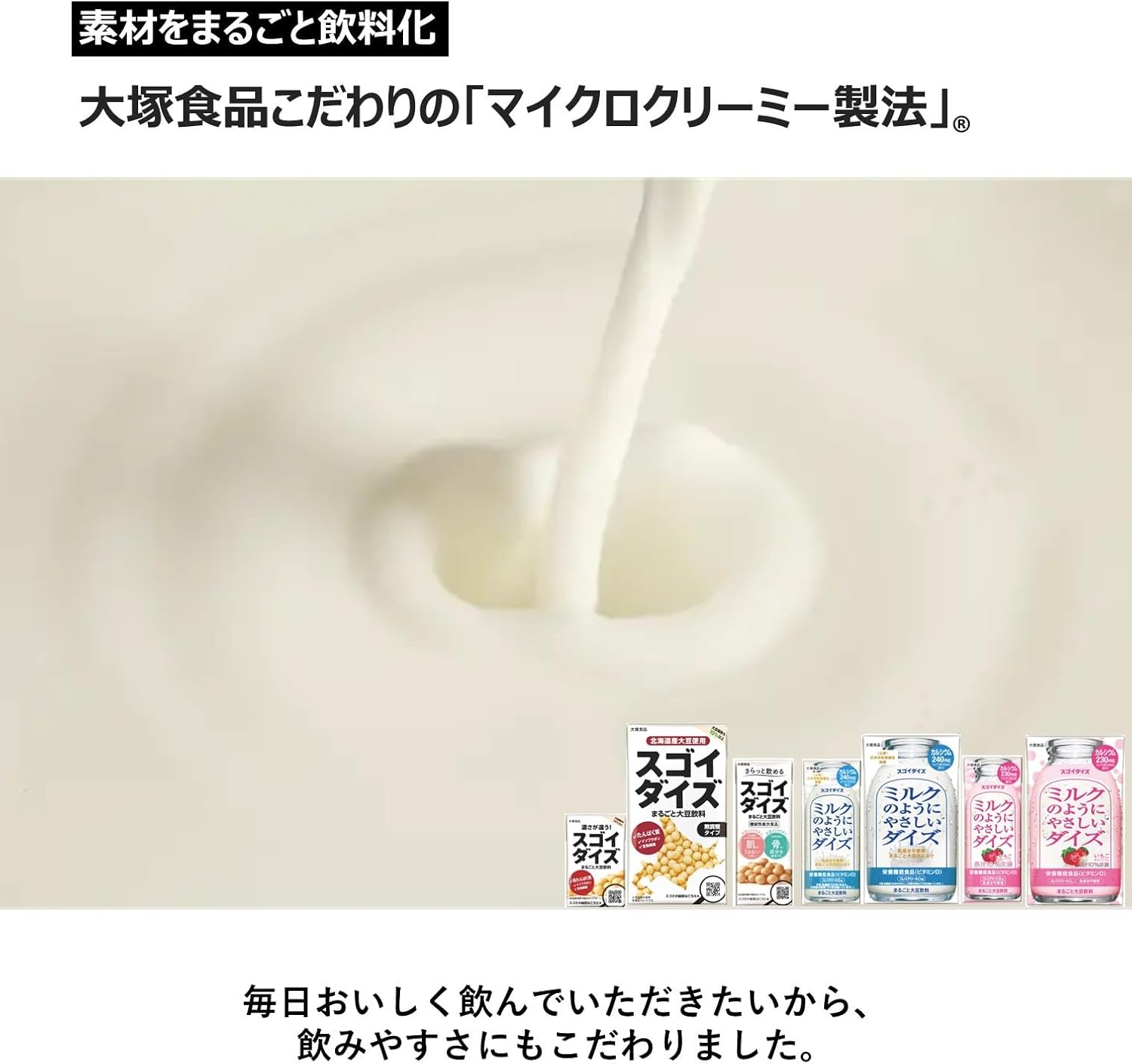 “おから”の部分まで使用した【まるごと大豆飲料】