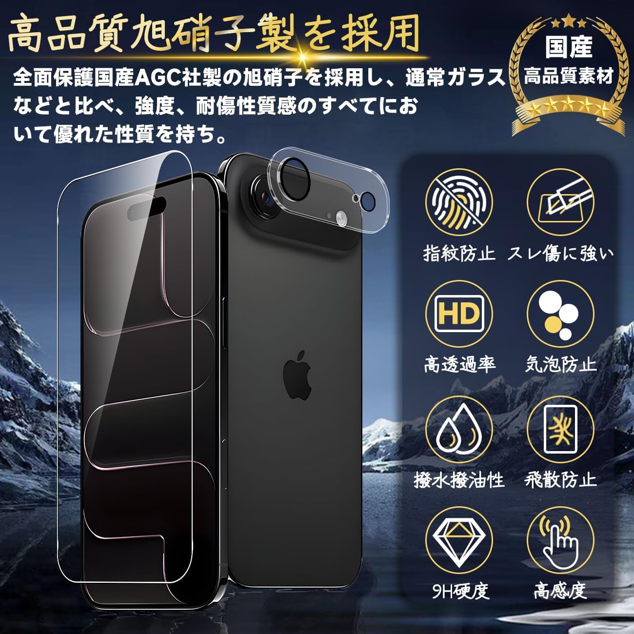2×ガラスフィルム 2xレンズ保護フィルム 1×ガイド枠付き
