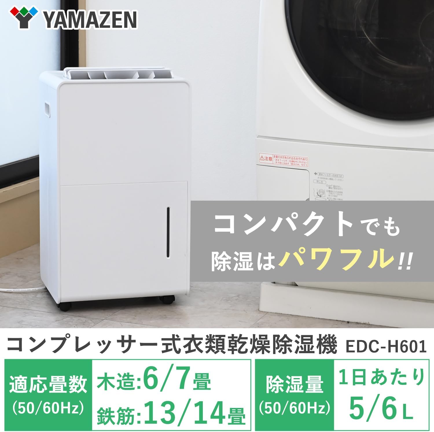 [山善] 除湿機 衣類乾燥 除湿器 コンプレッサー式 小型 強力除湿 除湿量 6.0L 衣類モード 切タイマー キャスター付き マットホワイト EDC-H601(W) Amazonで販売中