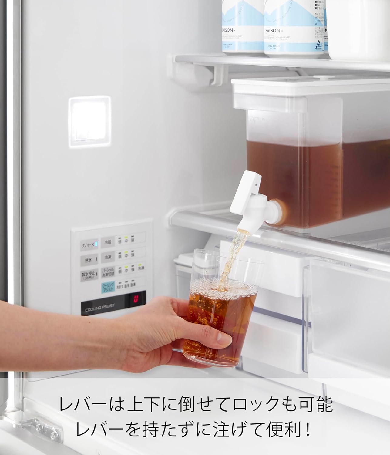 冷水筒を取り出さずに冷蔵庫から直接ドリンクを注げて便利。