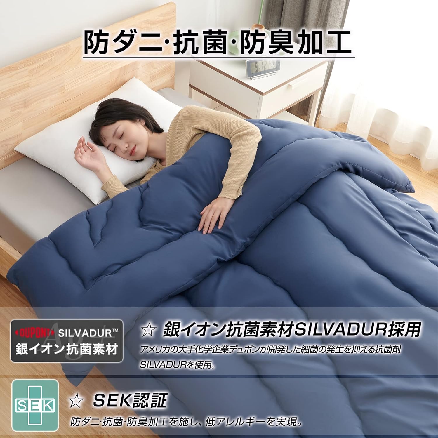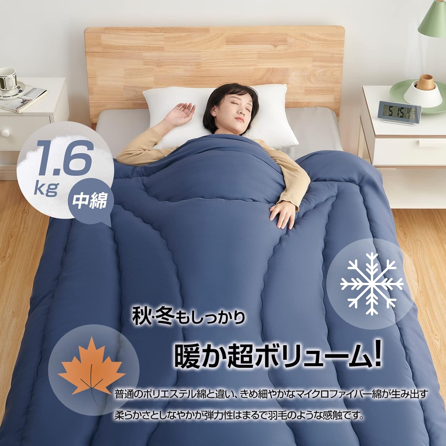 掛け布団 シングル 冬 かけ布団 洗える かけふとん オールシーズン 掛けふとん 柔らかな肌触り 肌掛け布団 軽量 通気 抗菌防臭 SEK認証 Ag+銀イオン抗菌素材 アレルギー対策 150x210cm ネイビー(中綿1.6kg) Amazonで販売中