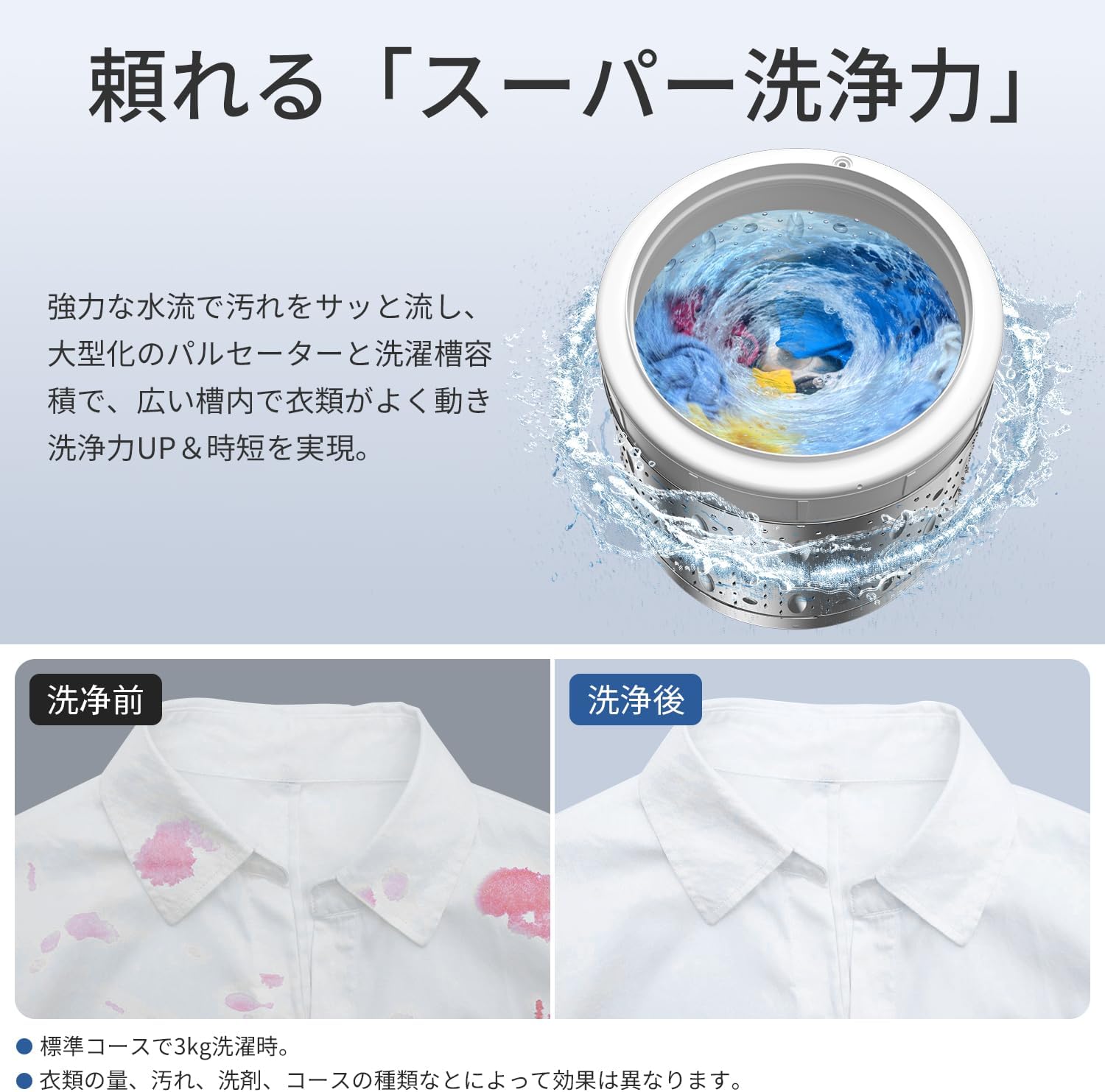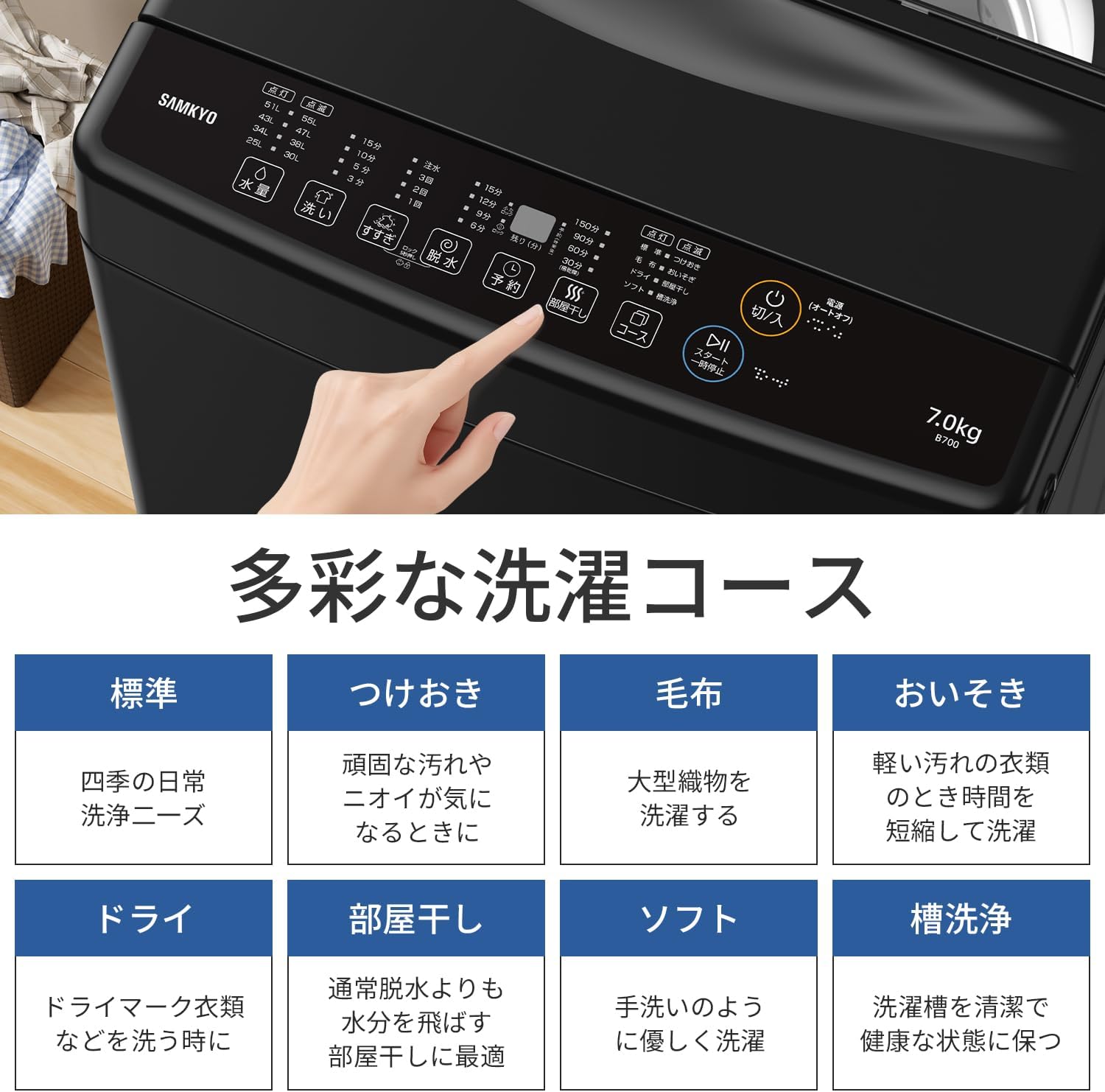 【コンパクト設計&1~3人用に最適】B700洗濯機は市販でもっともコンパクトなデザインを実現します!幅51cmの超薄型ボディはバルコニーやバスルームなどの場所に便利に設置で、生活のスペースがもっと節約できます。さらに、7kgの大容量ですが、設置面積はほとんどの5.5kg洗濯機と同等です、1〜3人暮らしにぴったり。