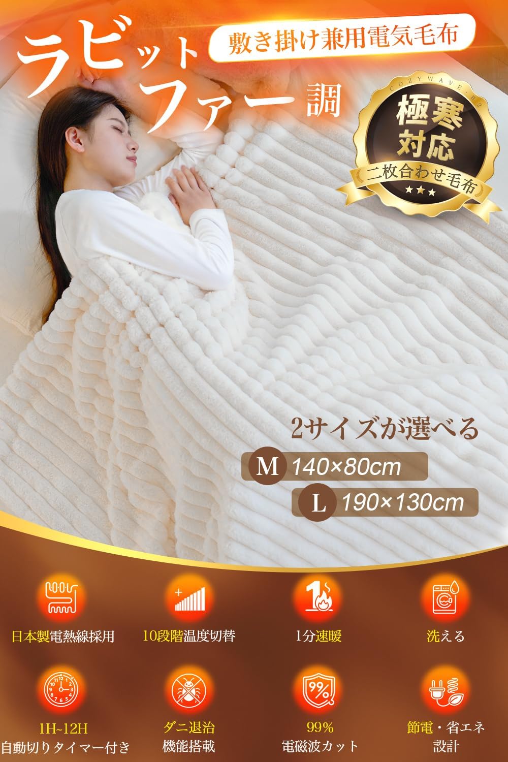 電気毛布 掛け敷き兼用【2025冬新登場 ラビットファー調素材&フランネル】 電気ブランケット タイマー付き 1-12H AI過熱保護機能搭載 10段階温度調節 速暖 節電 99%電磁波カット 頭寒足熱配線 暖房器具 電気ひざ掛け 大判サイズ 省エネ 節電 冬用 電気毛布 洗える ダニ退治機能 自宅 オフィス用 日本語取扱説明書付き (グレー, 140×80cm) Amazonで販売中
