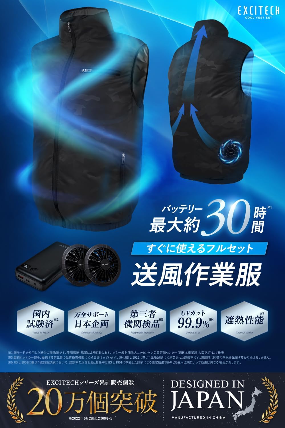 [Excitech] 【チタン加工 体感-2℃ 】空調作業服 ベスト ファンバッテリーセット 20,000mAh バッテリー 大容量 17V 暑さ対策 静音 空調作業着 レディース メンズ Amazonで販売中