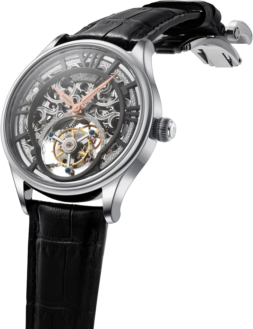 HAOFA メンズ スケルトン トゥールビヨン メカニカル 腕時計 サファイアフライング トゥールビヨン 男性用 中空時計 高級 ファッション Amazonで販売中