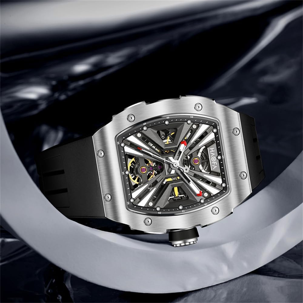 HAOFA 腕時計メンズ 自動巻き スケルトン時計 機械式 316Lステンレス鋼 スーパー夜光 樽型 トノー型 50M防水 チタン時計 紳士 ビジネス ファッション 男性プレゼント Amazonで販売中