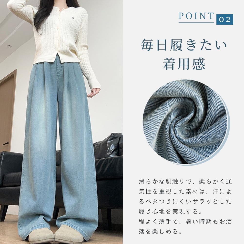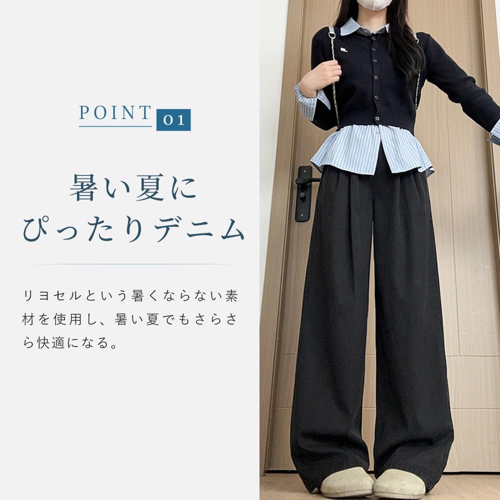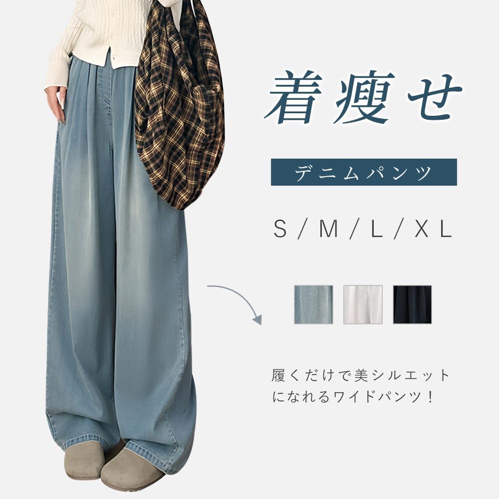 [PAFHL] ワイドパンツ デニム ジーンズ レディース 夏 涼しい ロングパンツ ズボン ゆったり 美脚 脚長 着痩せ Amazonで販売中