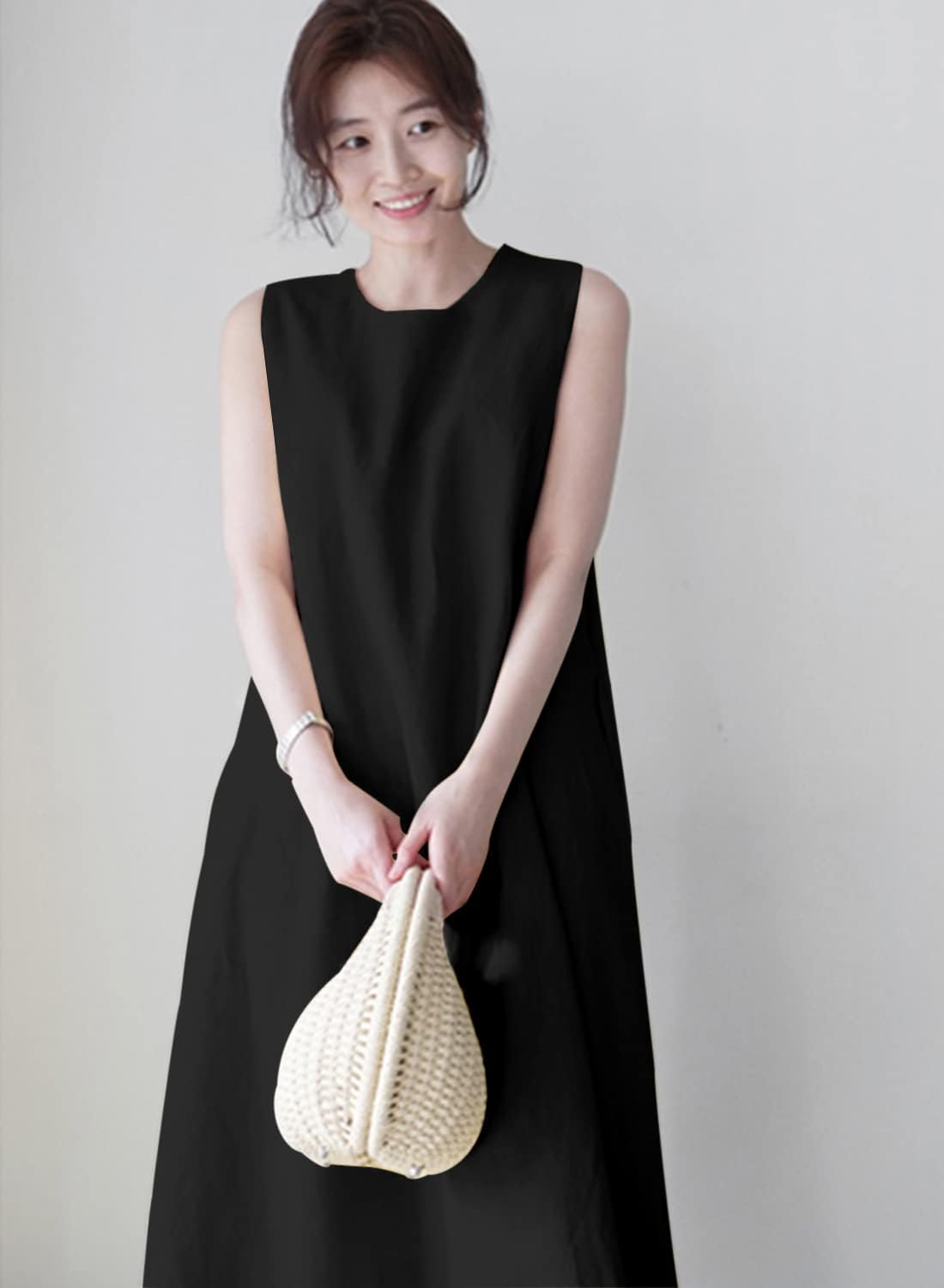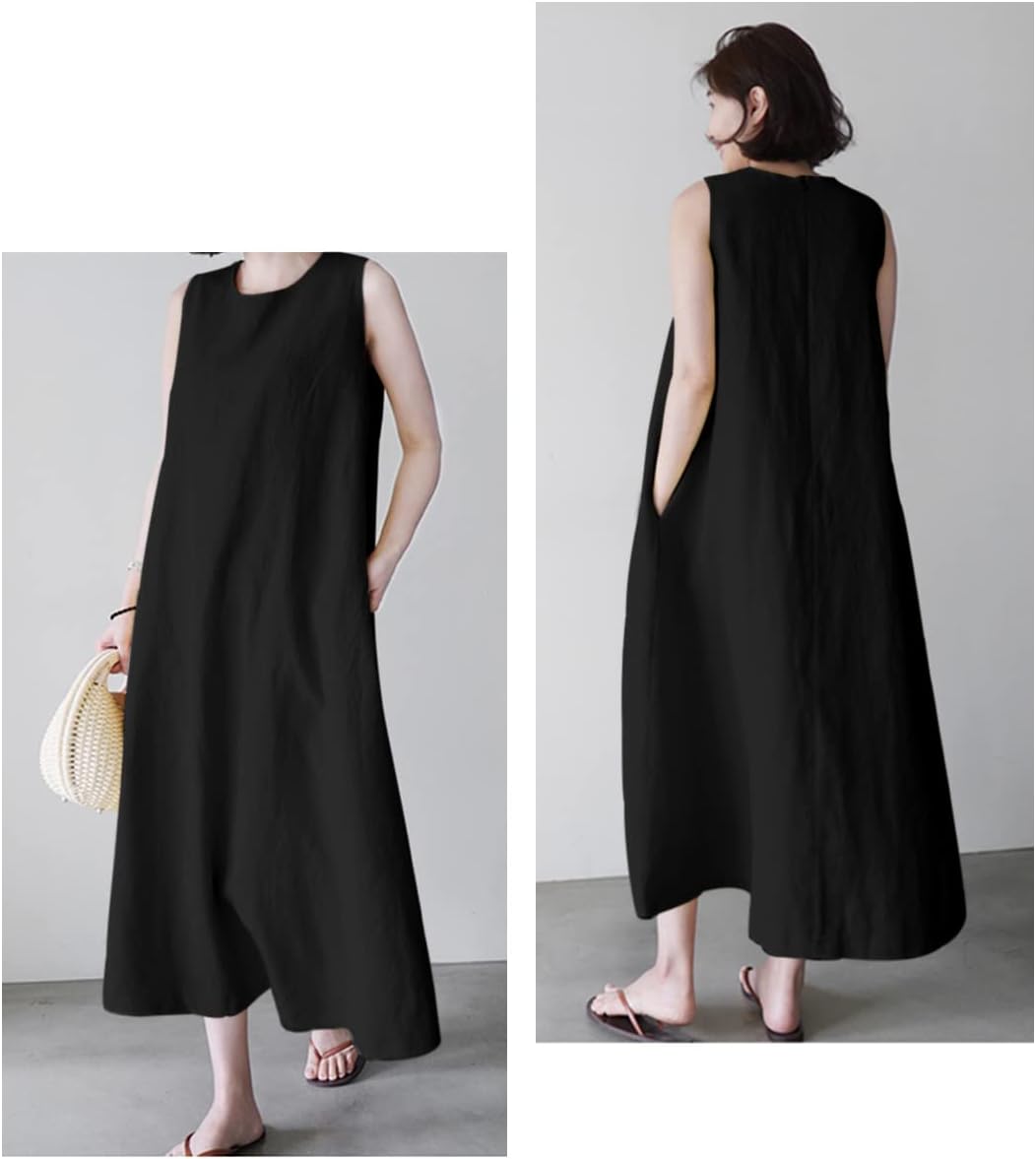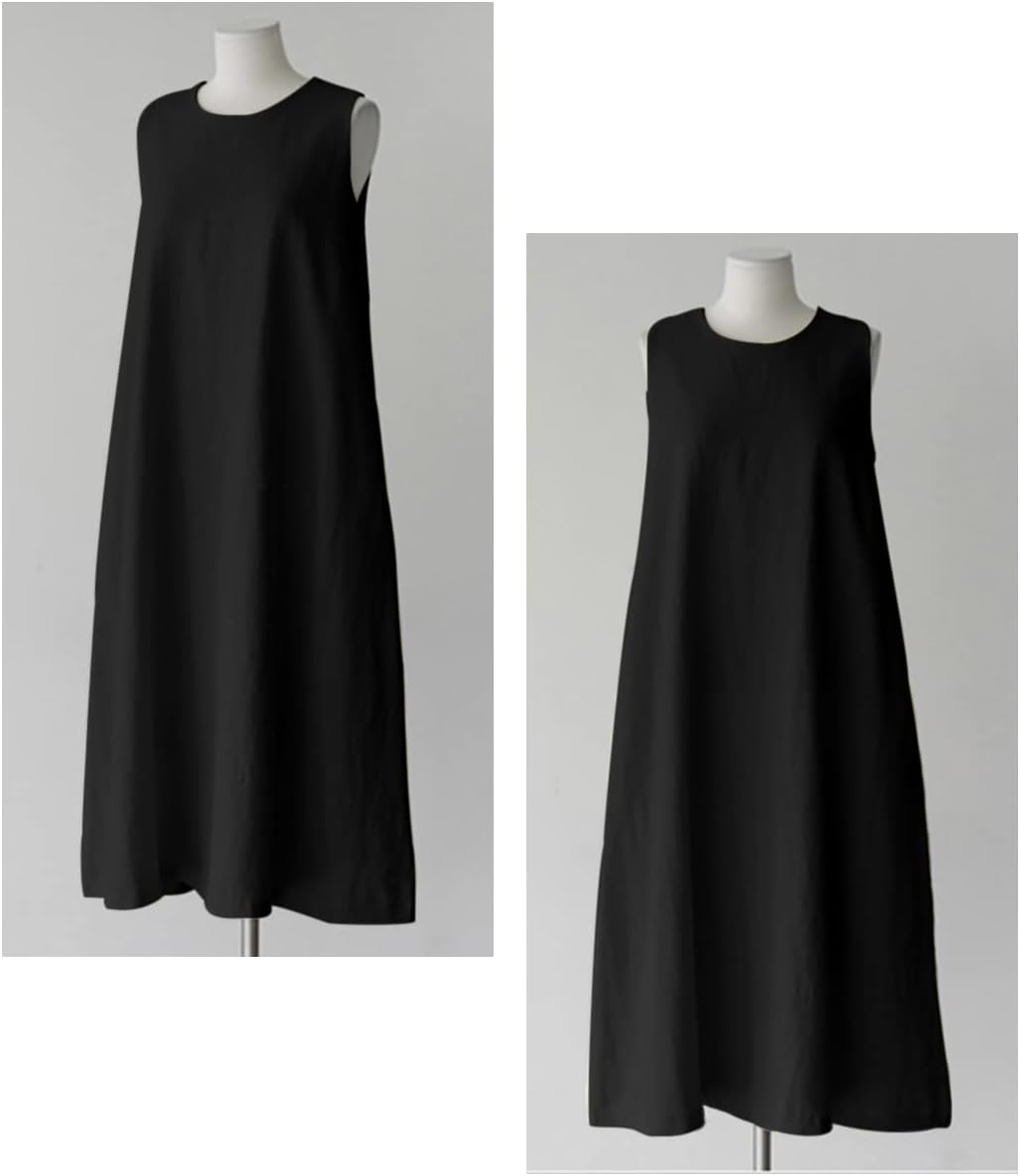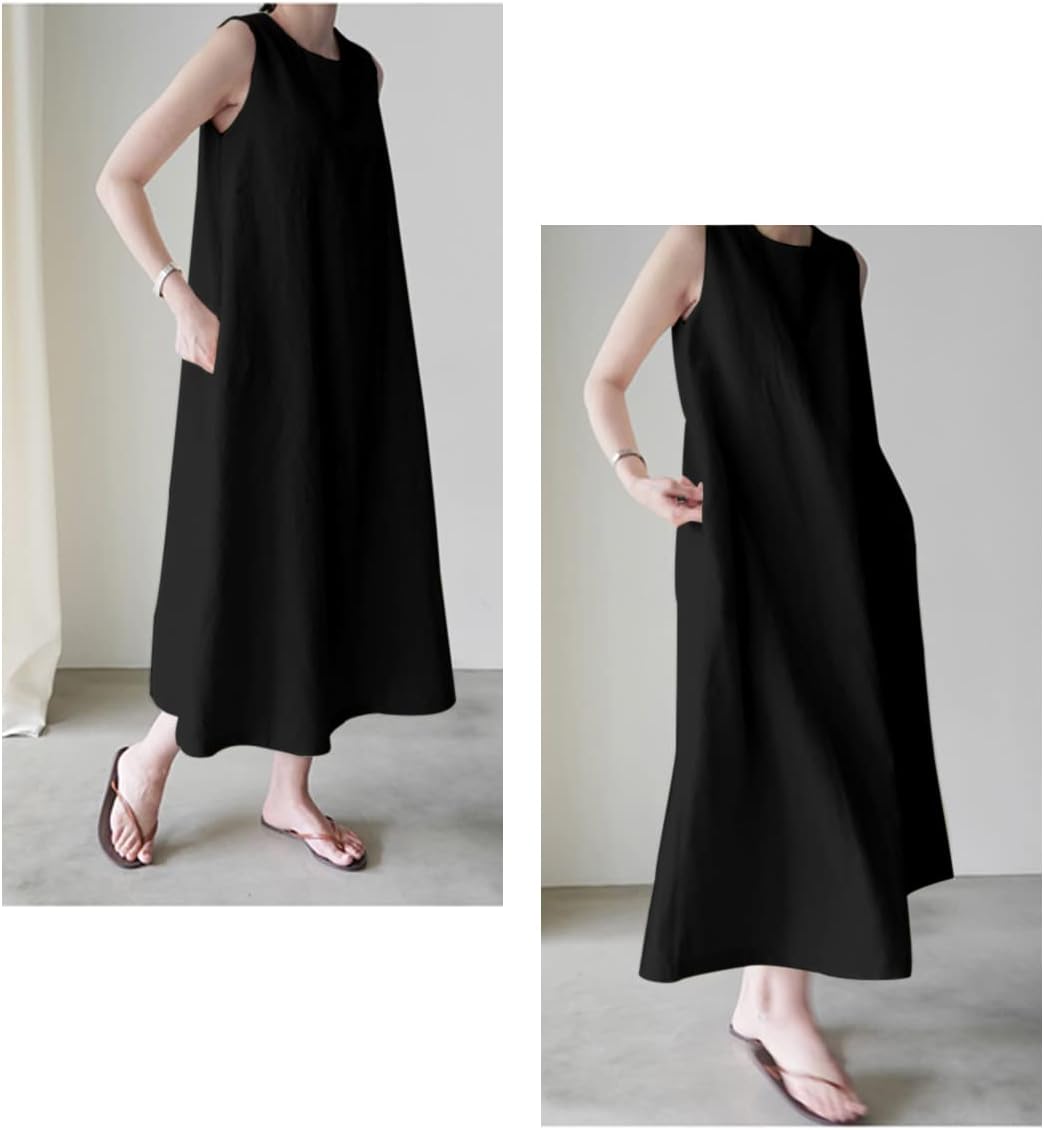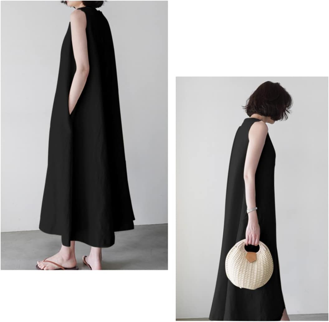 [Sueeya] スイーヤ ワンピース レディース ロング ノースリーブ リネン ナチュラル ゆったり 体型カバー 知的 爽やか お洒落 可愛い ファスナー付き 裏地付き マキシワンピ カジュアル 夏 Amazonで販売中