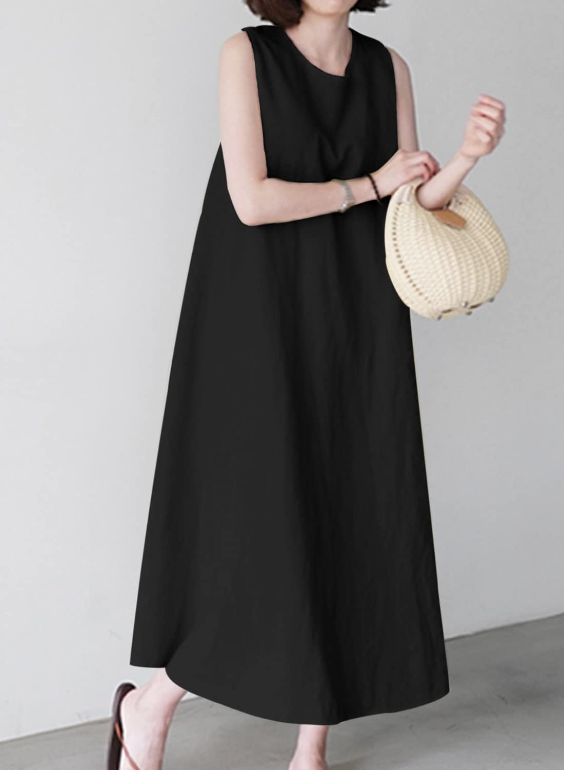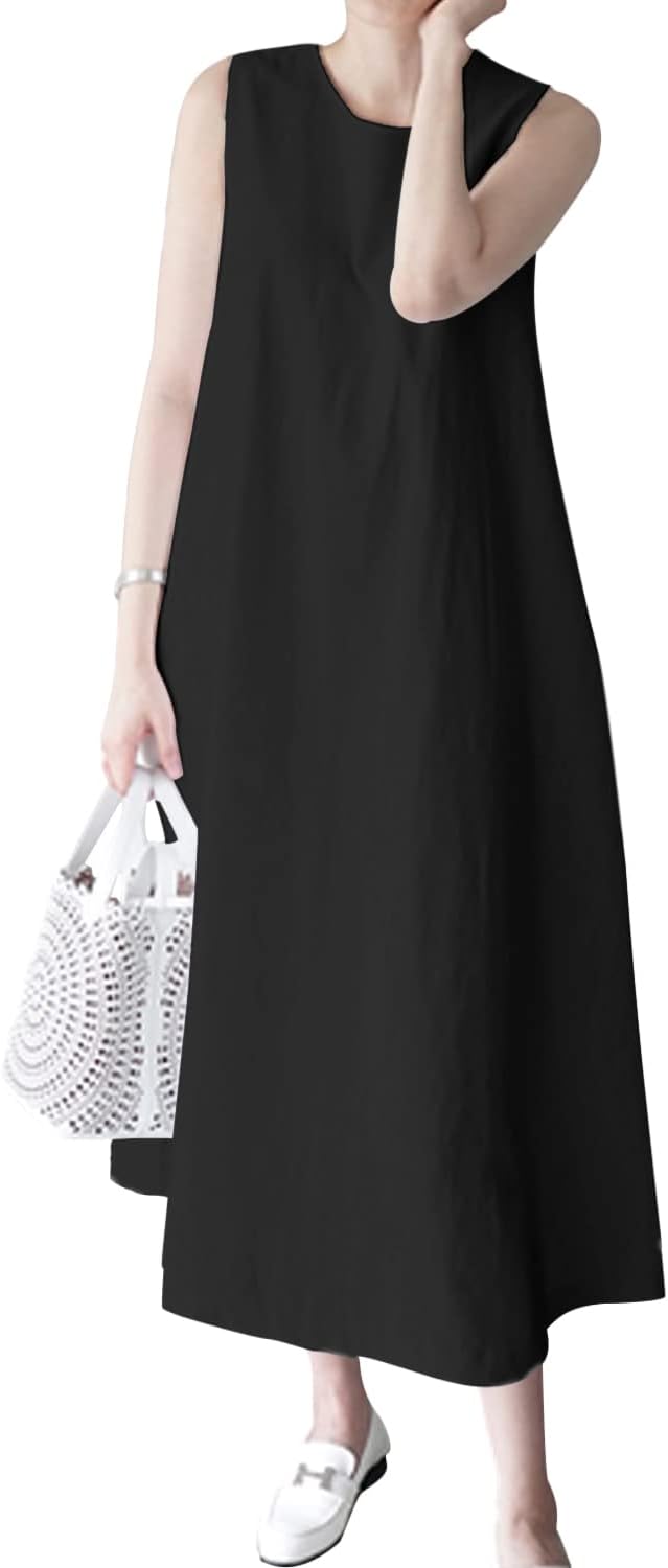 [Sueeya] スイーヤ ワンピース レディース ロング ノースリーブ リネン ナチュラル ゆったり 体型カバー 知的 爽やか お洒落 可愛い ファスナー付き 裏地付き マキシワンピ カジュアル 夏 Amazonで販売中