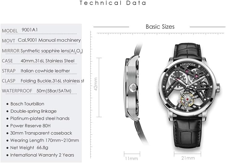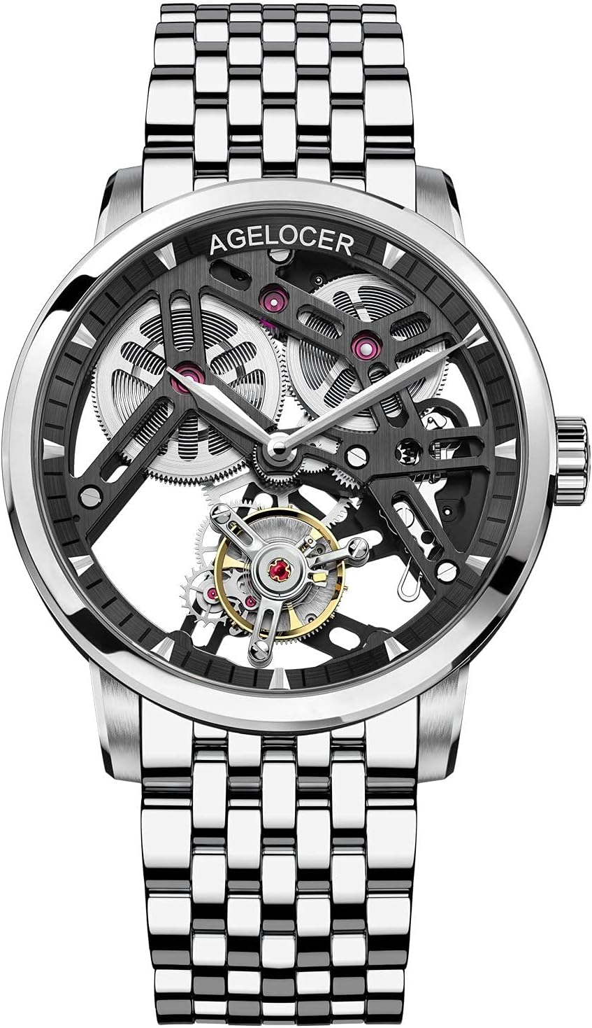 Agelocer メンズ 腕時計 トゥールビヨン 機械式 手動巻き 男性的 ラグジュアリー トップブランド ステンレススチール ブレスレット【赠電動リューズ巻き機】 (VU.PO:9001A9) Amazonで販売中