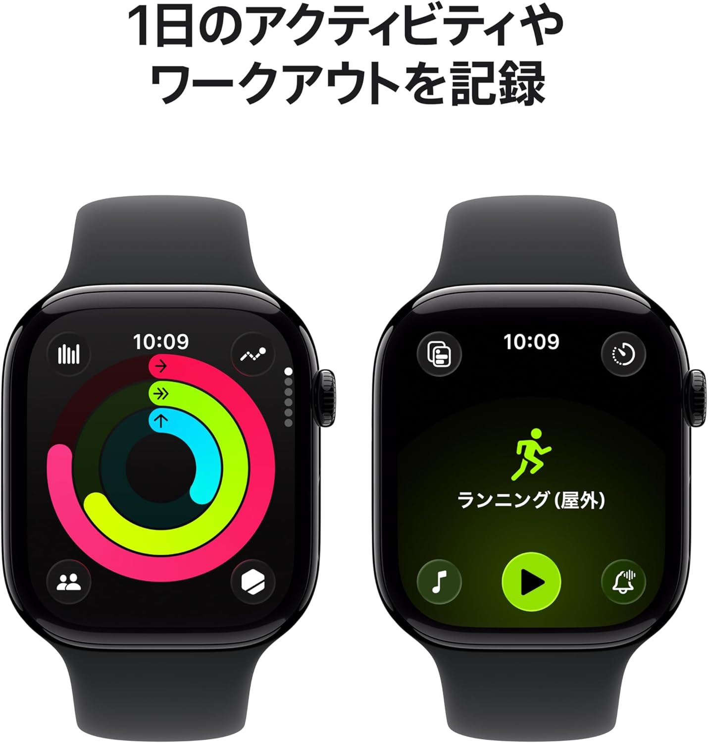 Apple Watch Series 11(GPSモデル)- 46mmジェットブラックアルミニウムケースとブラックスポーツバンド – M/L、睡眠時無呼吸、高血圧パターン、血中酸素、心電図、排卵推定、心拍数、服薬、マインドフルネス、ノイズ、睡眠スコア、転倒検出、IPX6X防塵、泳げる耐水、Suica対応、高速充電対応 Amazonで販売中