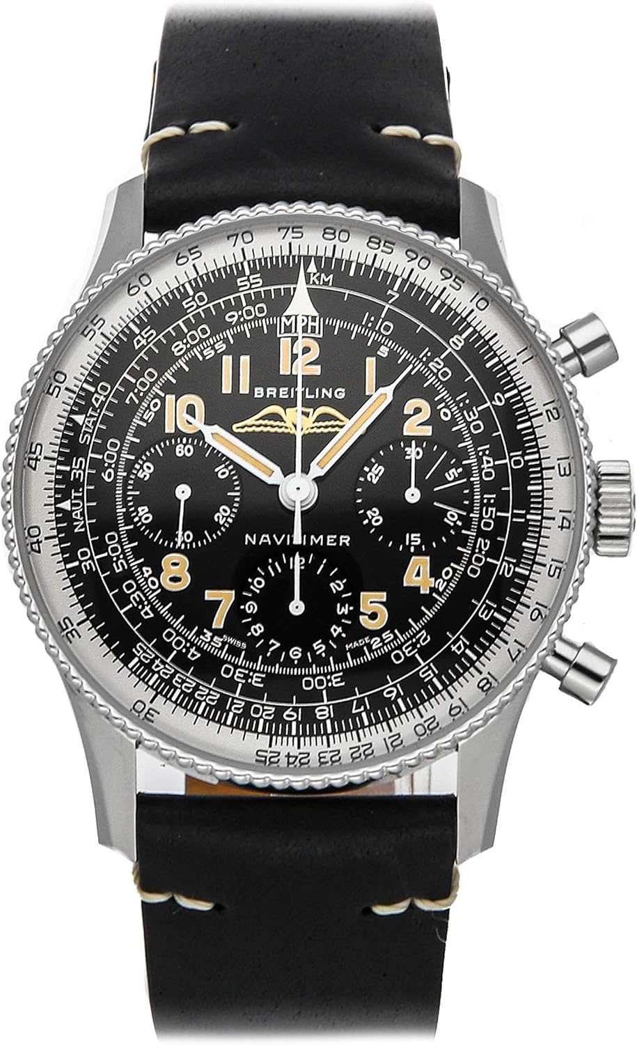 Breitling Navitimer Ref. 806 1959 再版限定版 (AB0910371B1X1) 手動巻き時計は、41mmのステンレススチールケースと、ブラックのレザーストラップのブラックダイヤルとステンレススチールのタングバックルが特徴です。 機能には、時間、分、スモールセコンド、日付計算尺、クロノグラフが含まれます。 この時計は箱と紙が付属しています。 これは1959年の限定版作品です! ほとんどの時間は工場保証に残っています! 1884年にLeon Breitlingによって設立された同社は、産業および科学目的のカウンターとクロノグラフのメーカーとして概念化されました。 10年も経たないうちに、Breitlingがその革新的デザインと機能性によって「ヒット」になったことが明らかになりました。 同社の最も注目すべきクライアントには、アメリカ軍や主要な国際航空会社が含まれます。