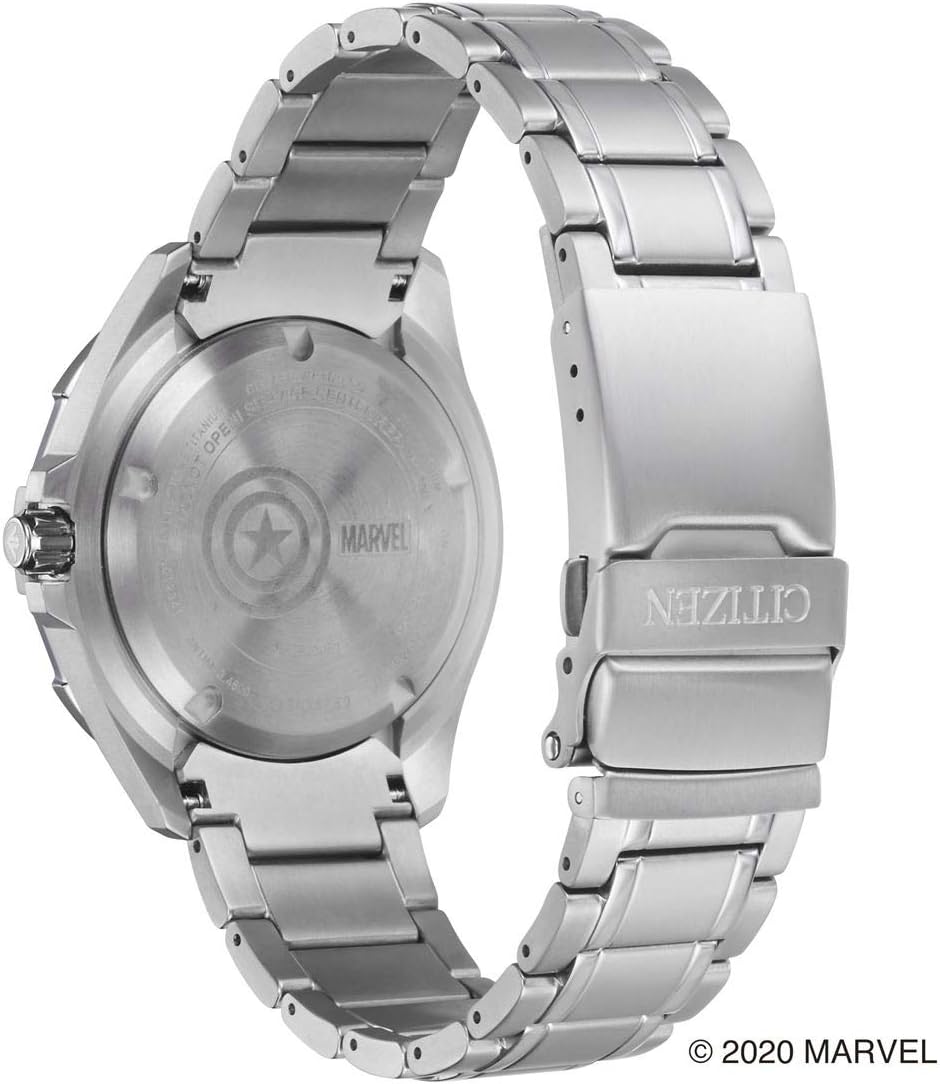 全世界で絶大な人気を誇る「マーベル」で活躍するスーパーヒーローたちをデザインモチーフにした、マーベルスペシャルモデル第二弾。「The First Avenger」モデルは。キャプテン・アメリカを象徴する盾を大胆に配した文字板は、テーマカラーであるネイビーをベースに、盾のカラーリングからインスパイアされたレッドとホワイトを差し色に合わせて、骨太なデザインに仕上げました。 ケースとバンドには傷がつきにくいスーパーチタニウムを採用。アベンジャーズのリーダーである「キャプテン・アメリカ」の屈強さにマッチした200m防水のダイバーズウォッチです。