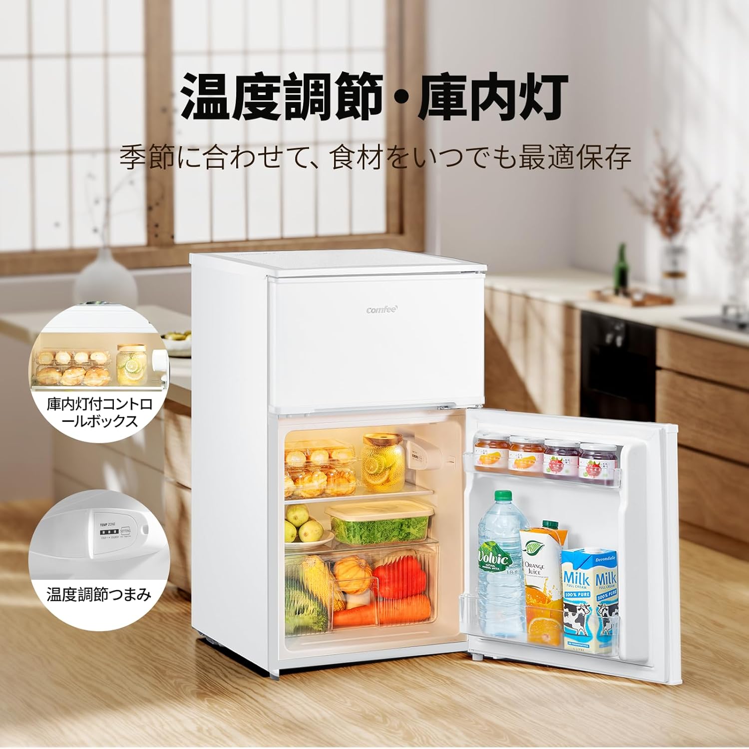 COMFEE’ 冷蔵庫 90L インバーター 省エネ 2ドア 右開き ホワイト RCD90WH1JP(E) 耐熱天板  Amazonで販売中
