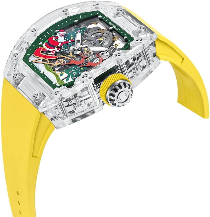 CRONUSART 腕時計 メンズ, 自動巻き 時計 Tonneau Case 腕時計 透明なクリスタルケース 50m 防水 高級機械式時計 発光、サファイアミラー、フッ素ゴムバンド、 クリスマス文字盤 (高級腕時計) Amazonで販売中